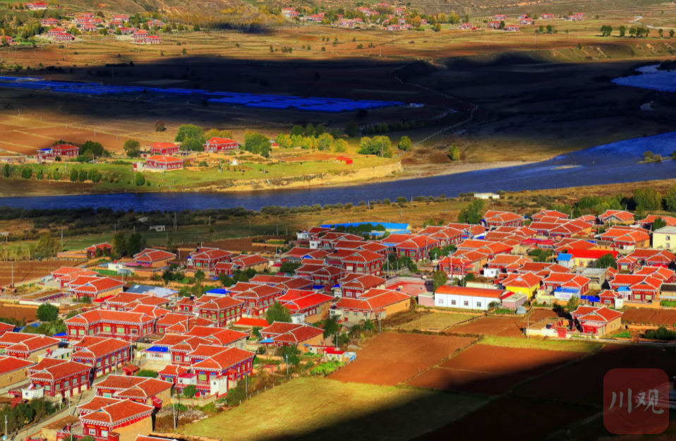 全国民族团结进步示范村甘孜州炉霍县虾拉沱村全貌。(省委统战部供图)