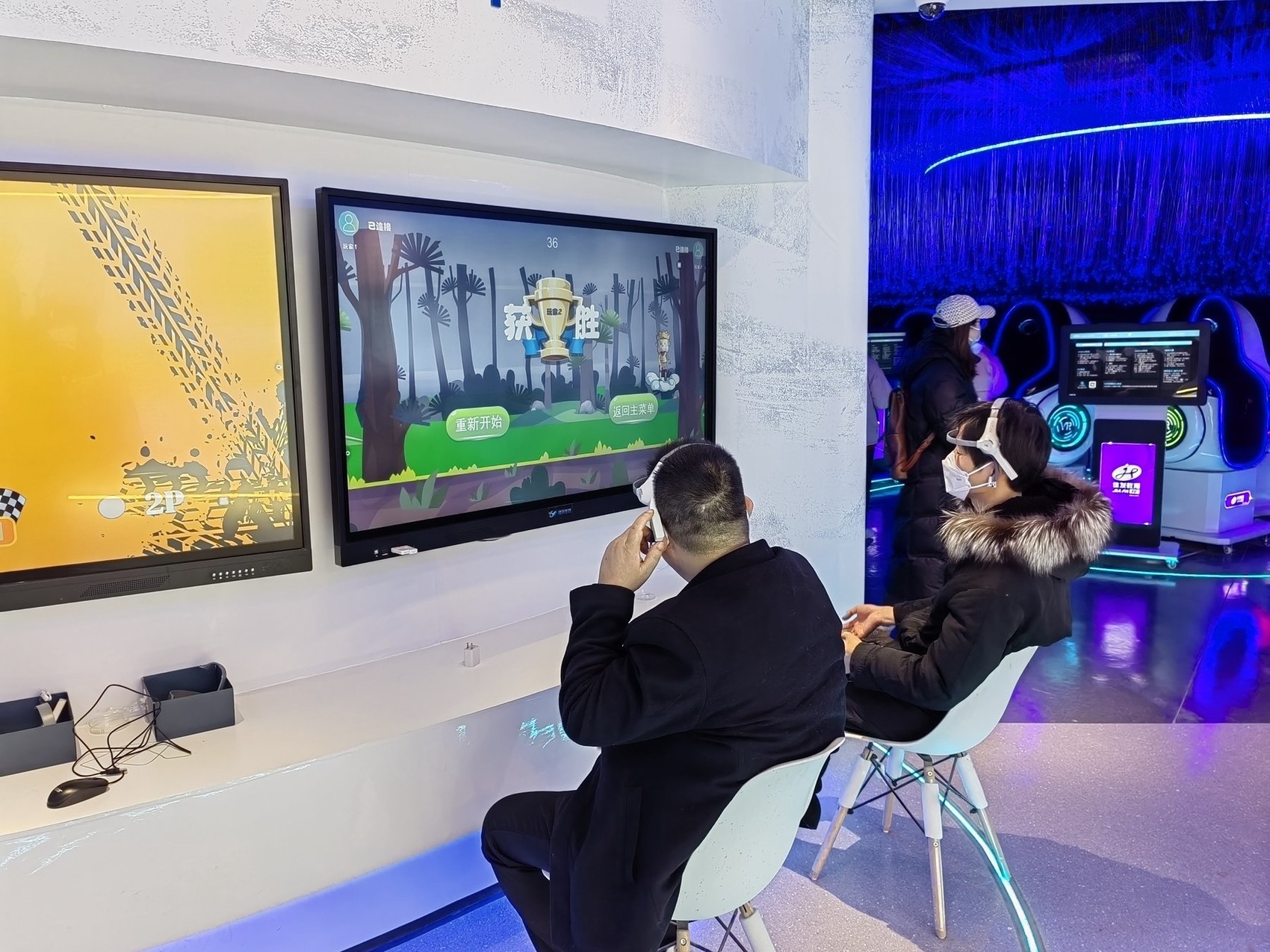 你可见过用脑电波打仗?两位体验者戴上设备端坐比武,最终一人胜出。