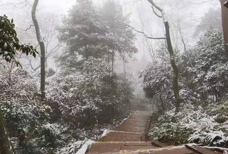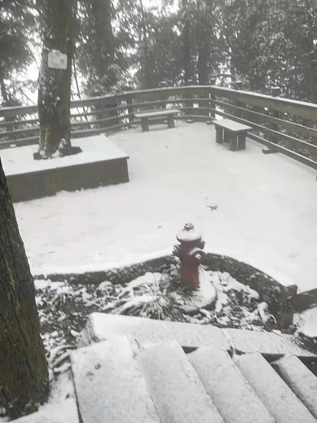 灵岩山一夜之间“刷了白”,龙池一些地方已经“堆起了”,青城山自然也不能错过这“热闹”。