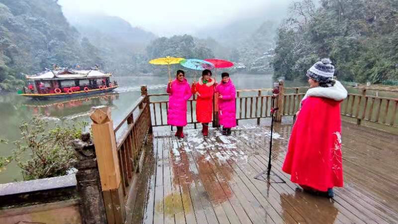 “雪花飘下,仿佛整个世界就变得安静下来,生活的匆忙也会被飘雪掩藏几分。”上午到都江堰景区赏雪的游客周倩女士说,景区古建筑的顶上堆起了一层薄薄的白雪,空中一直在飘小雪花,“只见其形,不闻其声。”