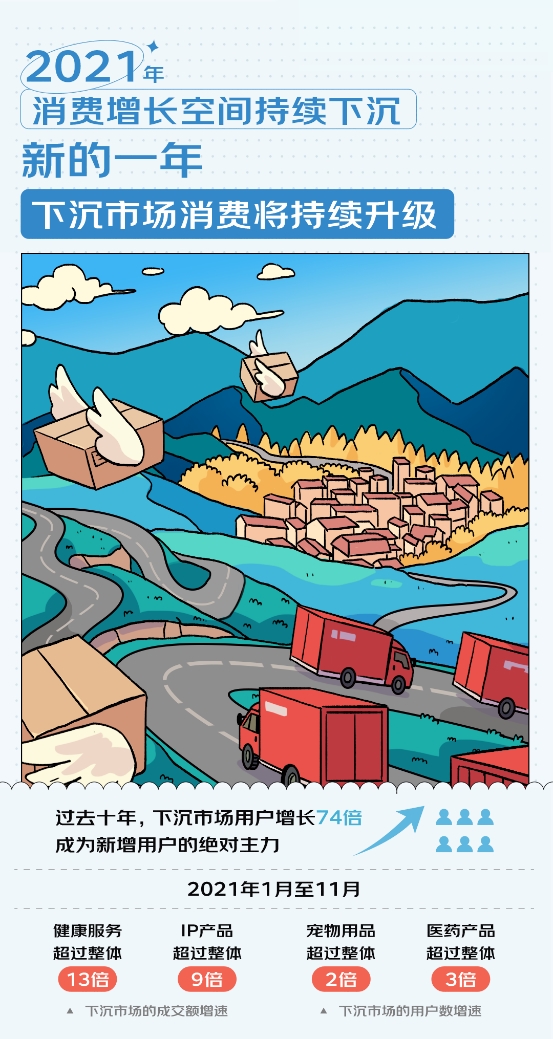 消费市场看,中小城市和乡镇虽然在品类结构上没有一线城市多元和均衡,但在部分品类上如家电、通讯产品等“大件”商品上,其消费实力直逼一线城市。随着消费市场的继续下沉,未来在一二线市场消费依然强劲的同时,中小城市和乡镇消费潜力仍将持续迎来高速成长,报告提示,商家在做产品推广策略时也应重点布局。