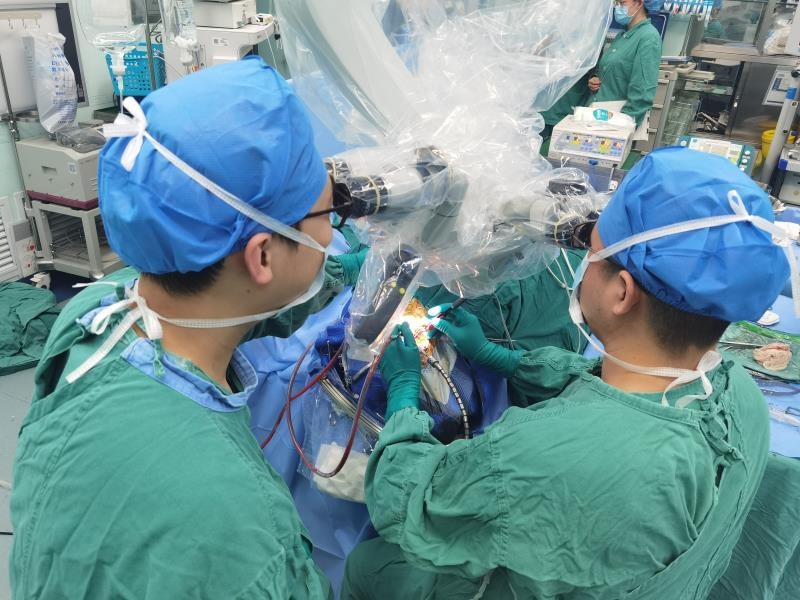 时值周末,神经外科颅底脑干治疗团队却迅速行动起来。吴波主任医师及黄才权主治医师曾先后在德国汉诺威国际神经疾病研究所学习,师从全球著名的听神经瘤大师Sammi教授。他们查阅大量文献,结合本例患者病情讨论,初步确定了治疗方案:通过脑室腹腔(VP)分流术有效控制颅内压,观察母亲神经功能状况相对稳定情况下,为胎儿再争取2-3周的生长发育时间,待剖宫产后母亲血流动力学稳定再行颅内听神经瘤切除术。但这需要医院神经外科、妇产科、新生儿科、重症医学科、麻醉科及感染科,甚至精神医学科等多学科通力合作。