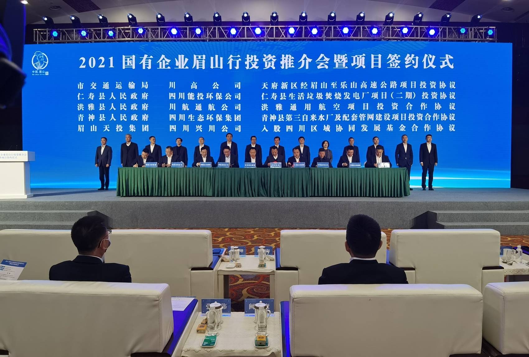 为进一步畅通国有企业与地方的合作渠道,充分发挥国有企业资金、技术等优势赋能地方发展,12月29日,省国资委同眉山市人民政府在眉山共同举行了“2021国有企业眉山行投资推介会暨项目签约仪式”,活动现场共签约重大项目22个,协议金额500亿元,涵盖金融、生物医药、先进材料、化工制造、基础设施建设等领域,投资主体包括四川发展(控股)有限责任公司和四川省能源投资集团有限责任公司等众多大企业大集团。