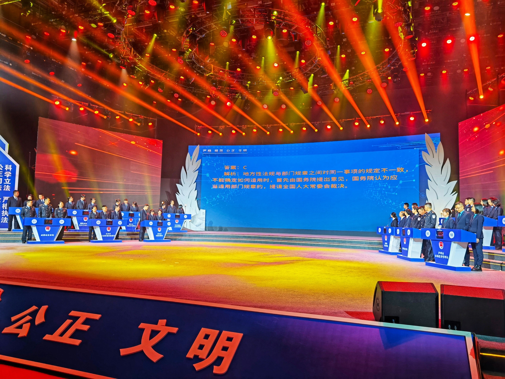 “2号队抢答正确,加10分!”12月29日,由四川省委全面依法治省委员会办公室、四川省法治政府建设工作领导小组办公室、四川省司法厅联合举办的首届行政执法人员技能“大比武”决赛在成都举行。
