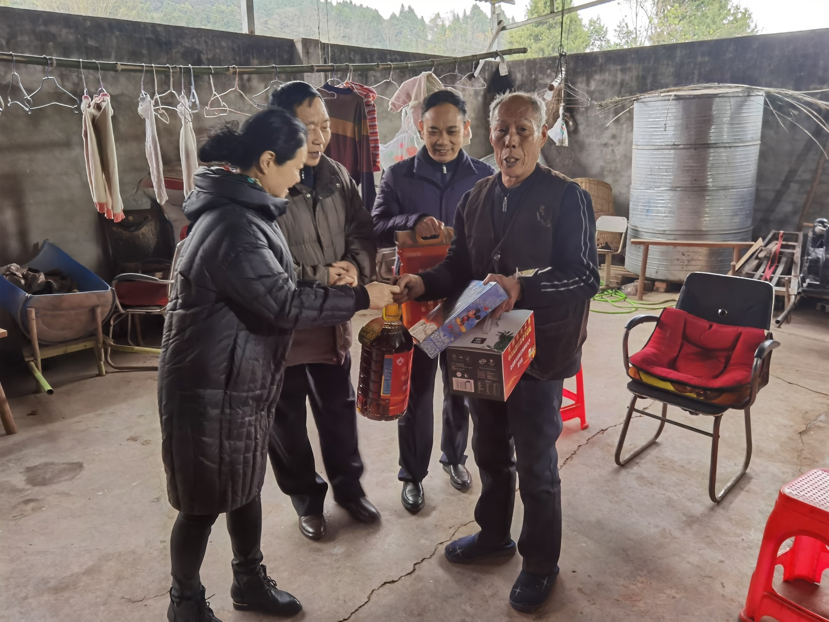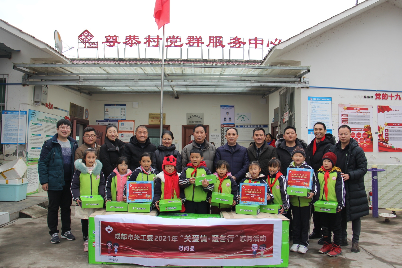 在新年即将到来之际,成都市关工委、中共成都市委老干部局在成都东部新区尊恭村开展“关爱情·暖冬行”慰问活动,看望慰问困难儿童及其家庭。他们为全村253名青少年送去新年祝福和崭新的运动鞋,为特困家庭带去了党和政府的关心及大米、菜油、牛奶等生活物资。