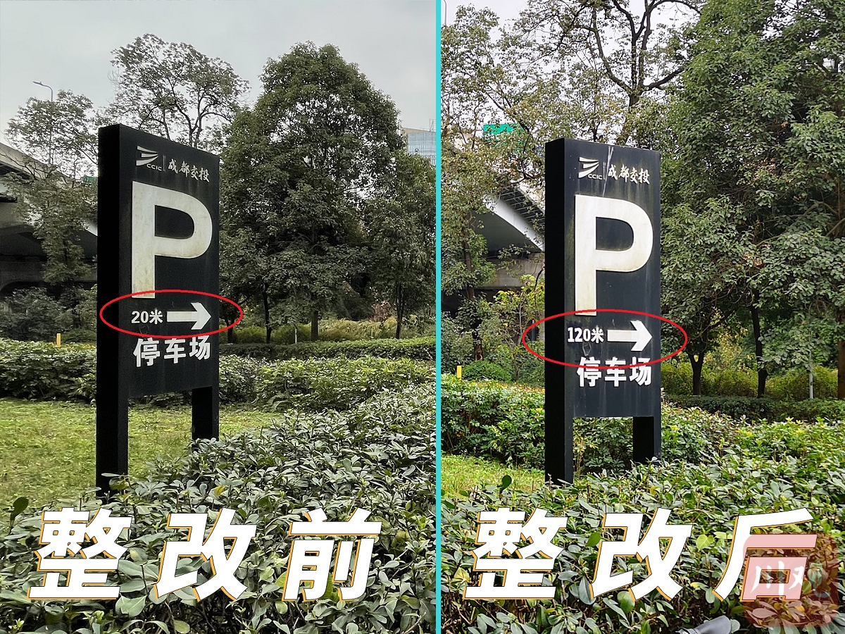 近日,有网友通过四川日报全媒体问政四川平台和民情热线(028-86968696)反映:在成都市成华区旭光路上一块停车引导牌显示到停车场的距离仅为20米,但实际距离却有百余米,给停车造成了极大的不便。<<<点击查看此前报道