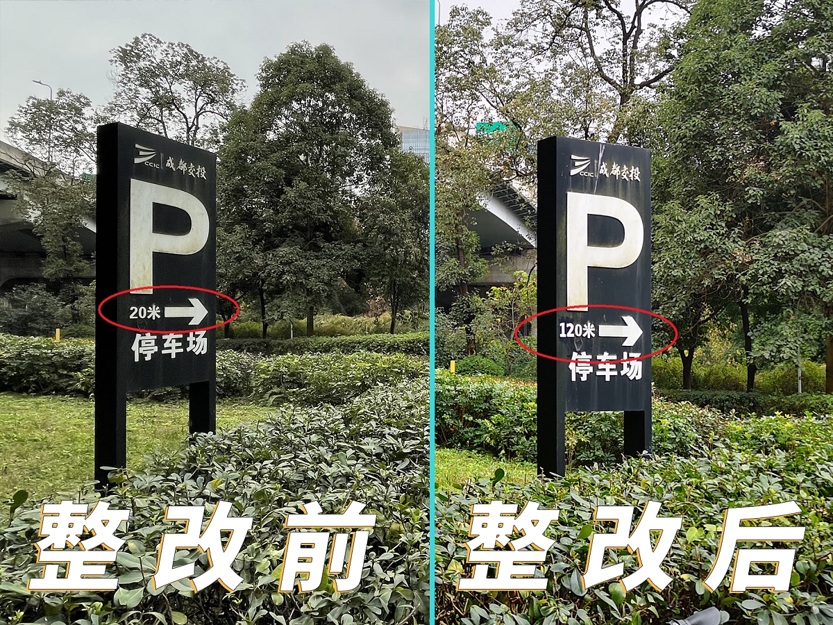 日前,有网友通过四川日报全媒体问政四川平台和民情热线(028-86968696)反映:在成都市成华区旭光路上一块停车引导牌显示到停车场的距离仅为20米,但实际距离却有百余米,给停车造成了极大的不便。四川在线报道后,相关部门立即进行了整改。