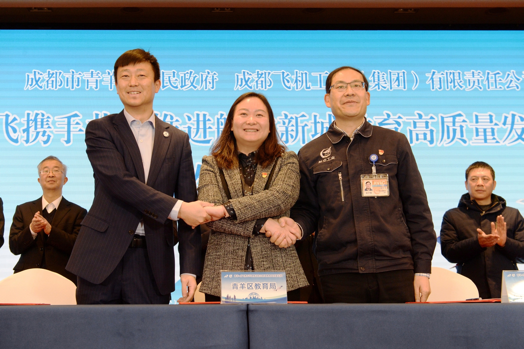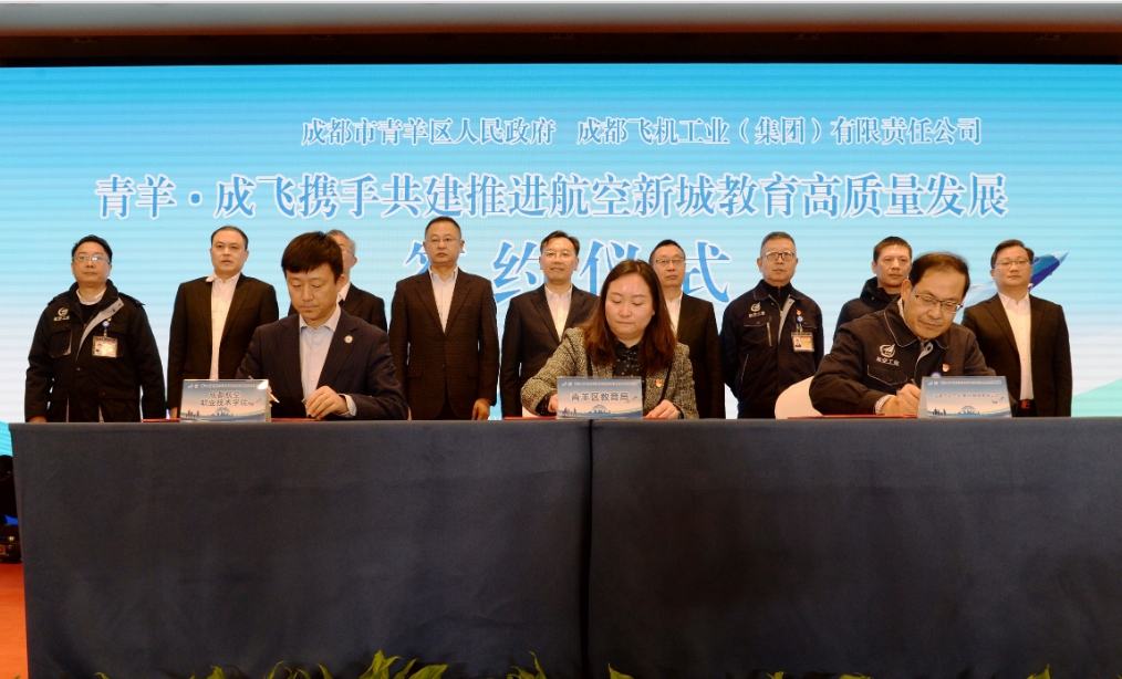 签约仪式上,青羊区人民政府和航空工业成都飞机工业(集团)有限责任公司签署了《政企共建推进青羊航空新城教育高质量发展战略合作协议》;航空工业成都飞机工业(集团)有限责任公司、成都航空职业技术学院和成都市青羊区教育局三方签署了《合作办学协议》。