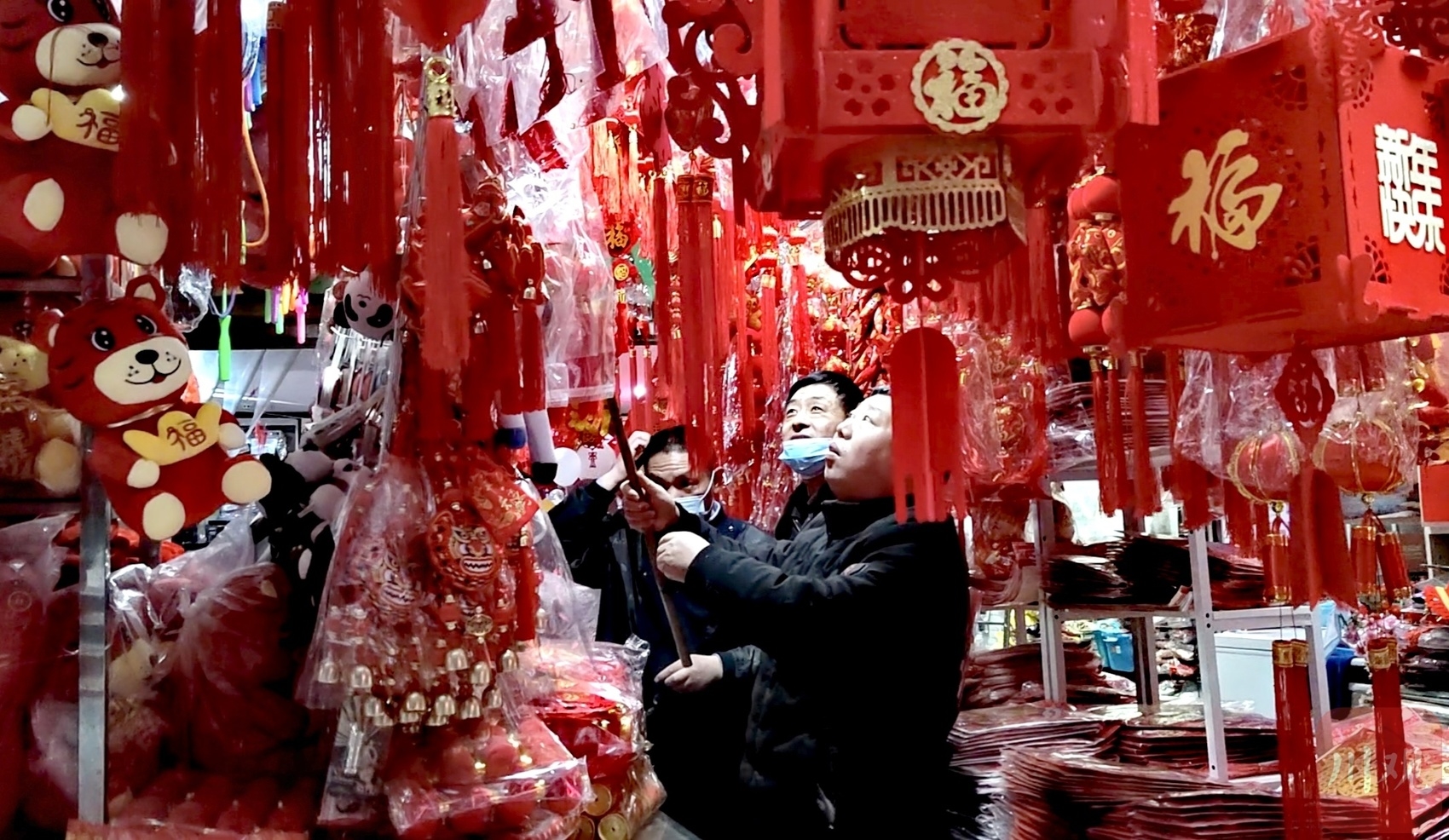 连日来,喜迎2022新年的大红灯笼、福字、贴纸等年节饰品陆续在成都各大超市、商场贺年专柜上架。12月30日,准备迎接新年的市民们在选购自己喜欢的迎新物品,期待2022年的到来。