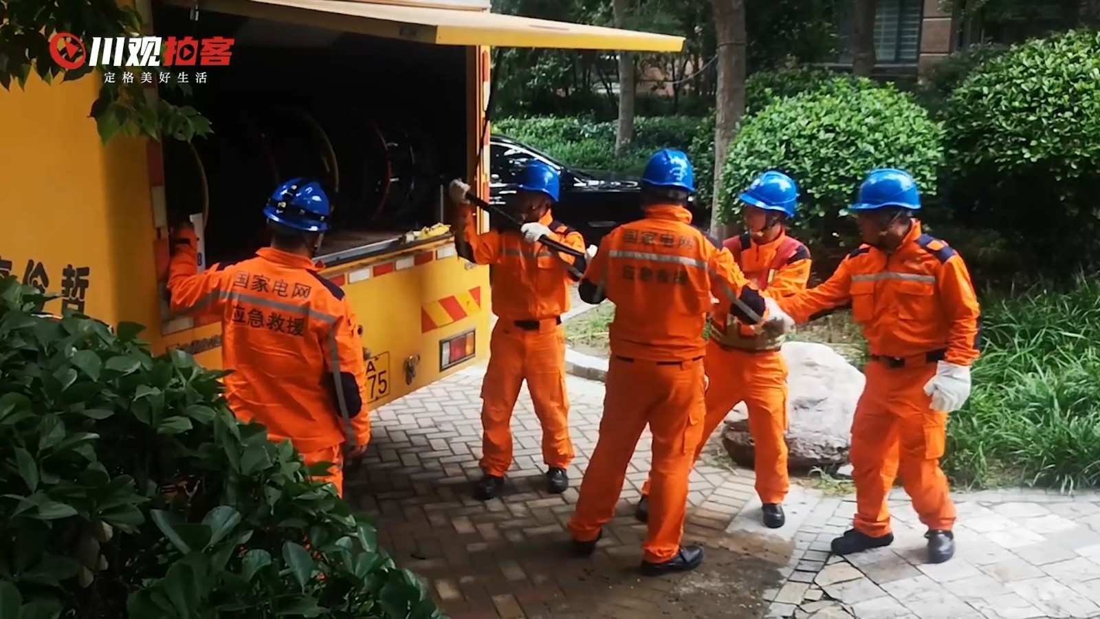 7月23日下午,国网四川绵阳供电公司的抢修队员正从带电车上拉出电缆,连通电源为郑州市最大居民小区——橡树玫瑰园临时搭建应急电源。此小区当时已断电超60小时,应急电源的接通能帮助居民解决高层电梯出行以及由此带来的取水不便等迫切问题。