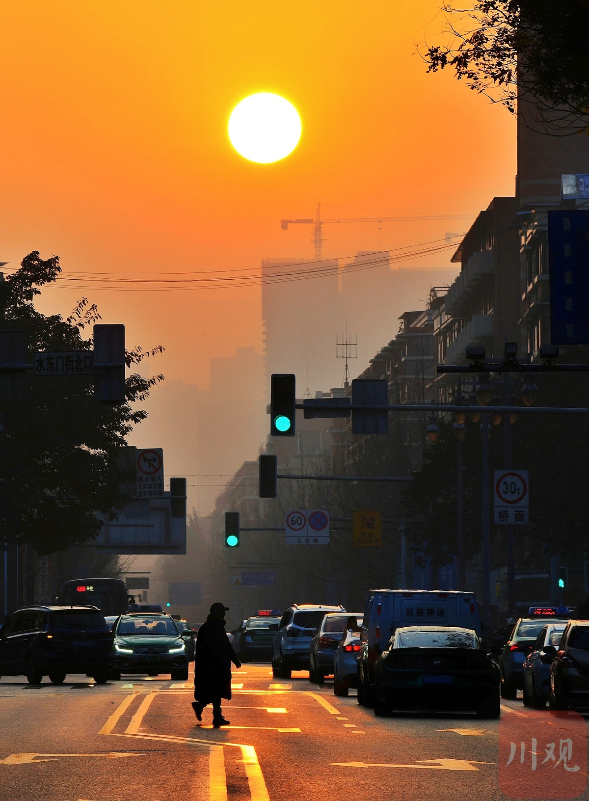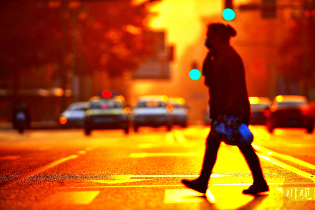 红日升腾阳光将街道染红,新年第一天,朝阳下,一半诗意一半烟火。追逐阳光的人,都是热爱生活的人。