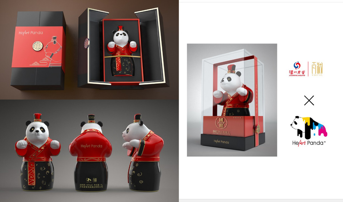 由锦江区的“锦思文化”与泸州老窖携手打造,熊猫酒(Heart Panda泸州老窖熊猫酒)将熊猫文化与川酒文化融合,用文化助力传统产业创新发展。产品融合“国宝、国瓷、国窖”三大核心文化元素,成为集川酒消费、文化品鉴、美术品收藏于一体的创新文旅产品,传播天府文化,助力传统产业升级。