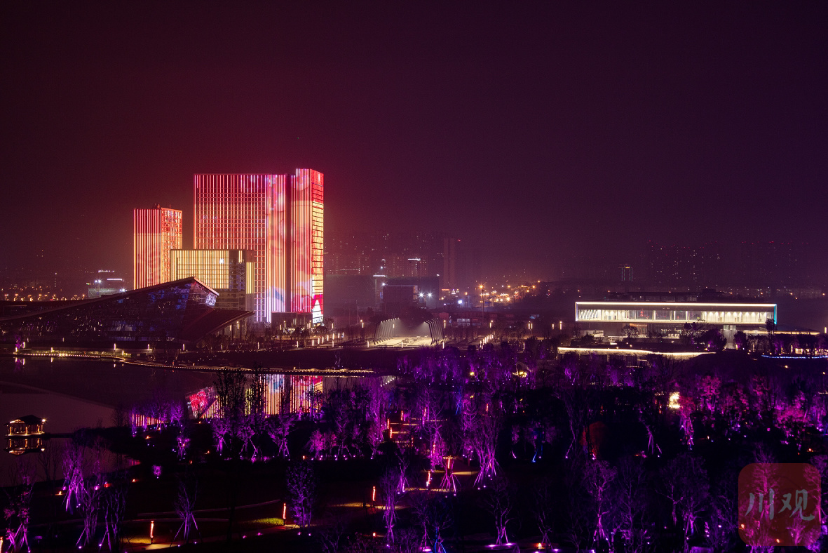 昨晚,在辞旧迎新之际。第31届世界大学生夏季运动会主会场东安湖体育公园(世界大运公园)“一场三馆”,以及东安湖、东安阁、木棉花酒店等泛光照明亮灯,迎接2022年的到来。