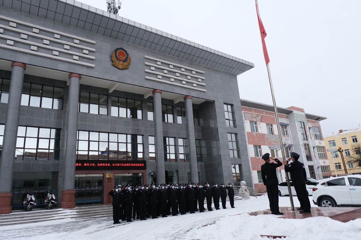 2022年1月1日上午,阿坝州红原县公安局在机关大院举行庄严的元旦升国旗仪式。