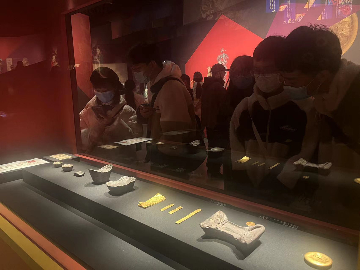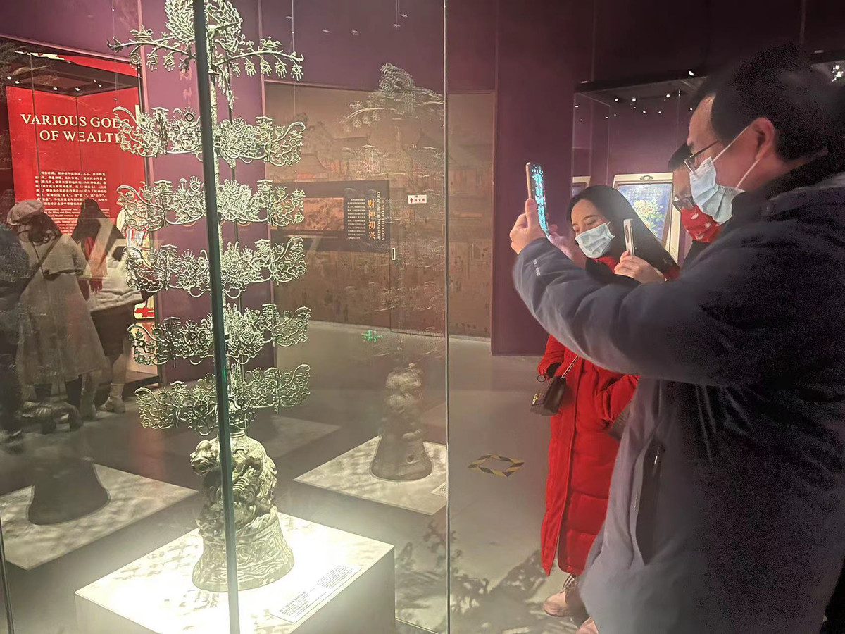 游客参观成都博物馆“富贵长春——中国传统财富文化展”(王一蕾 摄)