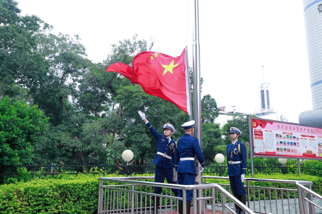 上午9时,迎着缕缕晨辉,全体人员精神抖擞、整齐列队,升旗仪式正式开始。英姿飒爽的护旗手迈着整齐有力的步伐护卫着国旗走上升旗台,伴随着雄壮嘹亮的国歌,鲜艳的五星红旗冉冉升起。