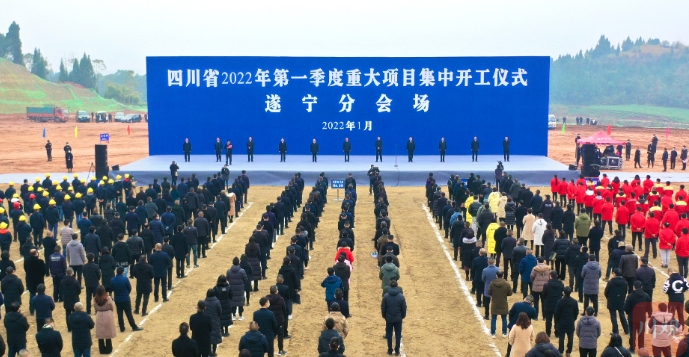 1月4日,四川省2022年第一季度重大项目集中开工仪式遂宁分会场在蓬溪经开区金桥片区举行。本次共有71个项目集中开工,计划总投资420亿元,涵盖产业发展、基础设施、社会民生、生态环保等多个领域。