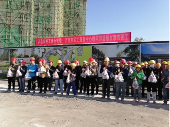泸县是四川省劳务输出大县,常年有45万余农民工外出务工,其中,在攀西地区的农民工近万人。在新年到来之际,中共泸县县委组织部、泸县农民工综合党委、泸县人力资源和社会保障局、泸县农民工服务中心一行受县委县政府的嘱托,代表泸县农民工工作领导小组,前往攀枝花,看望慰问在攀泸县籍农民工,送上新年的祝福,送上党和政府的关心关怀。