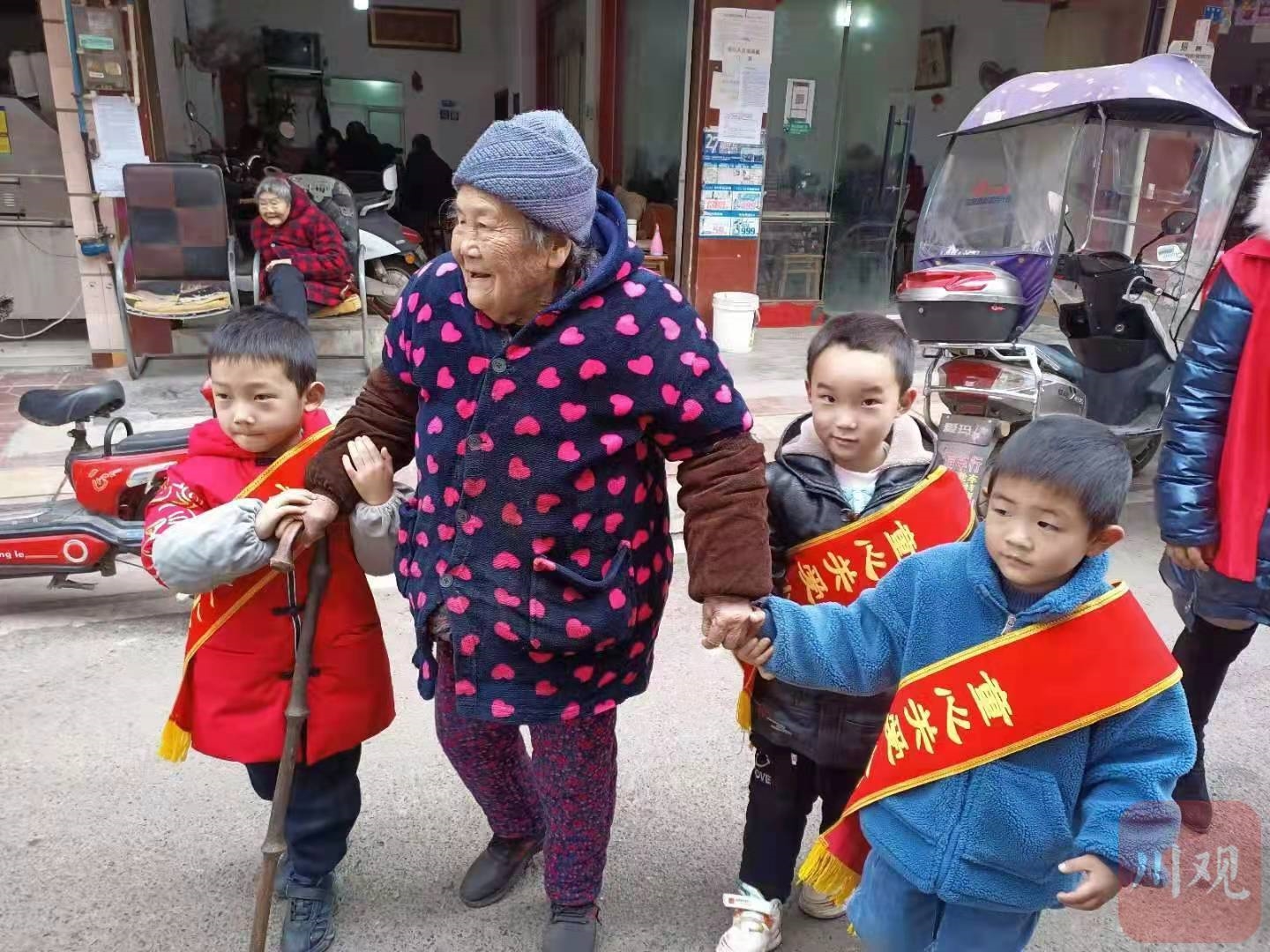 当天,孩子和家长们还积极报名“关爱同行”服务志愿服务,和三名高明社区党员志愿者一起走入高明社区9位85岁以上高龄老人家中。孩子们为老人捶腿按摩、表演小节目,家长们打扫卫生、陪着聊天。