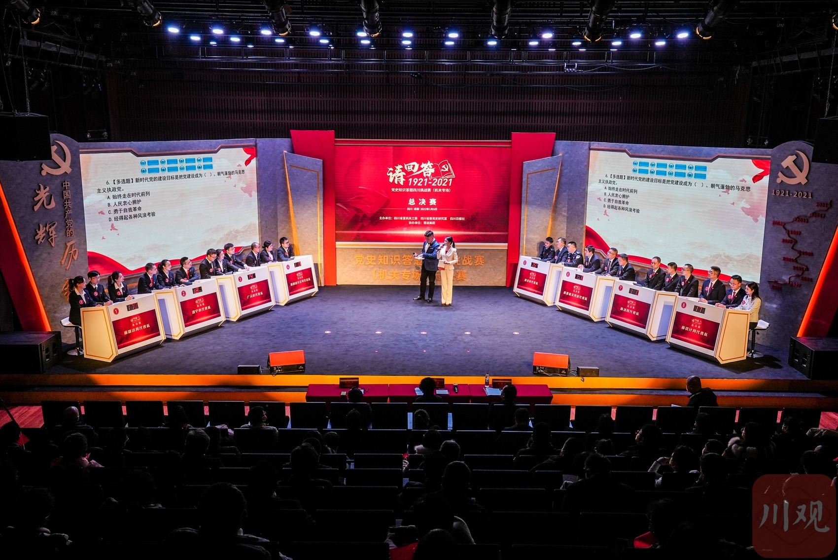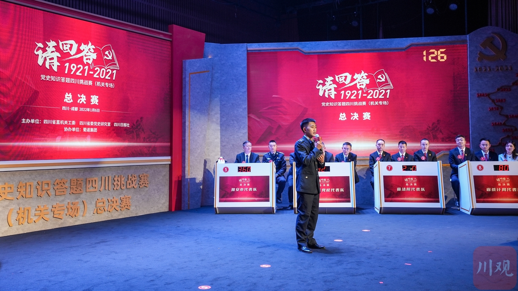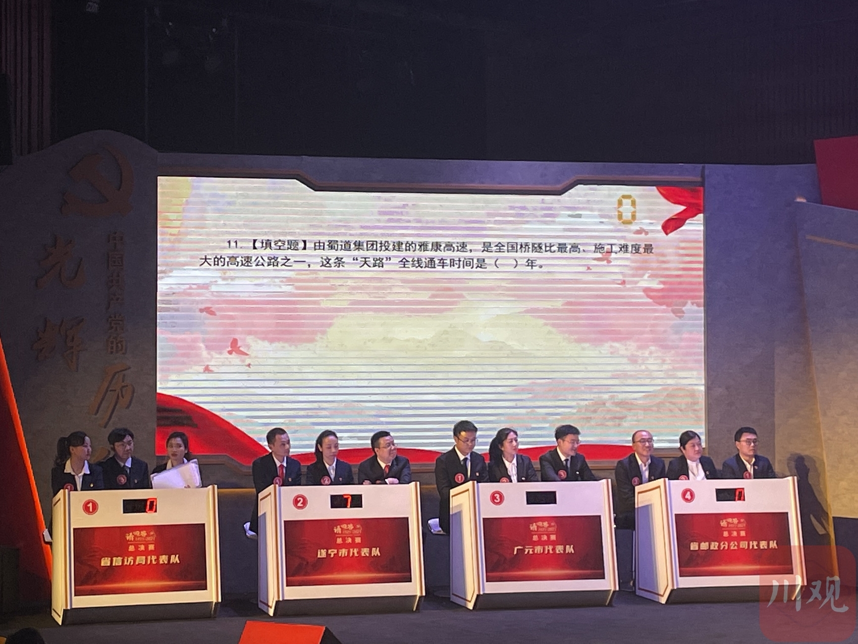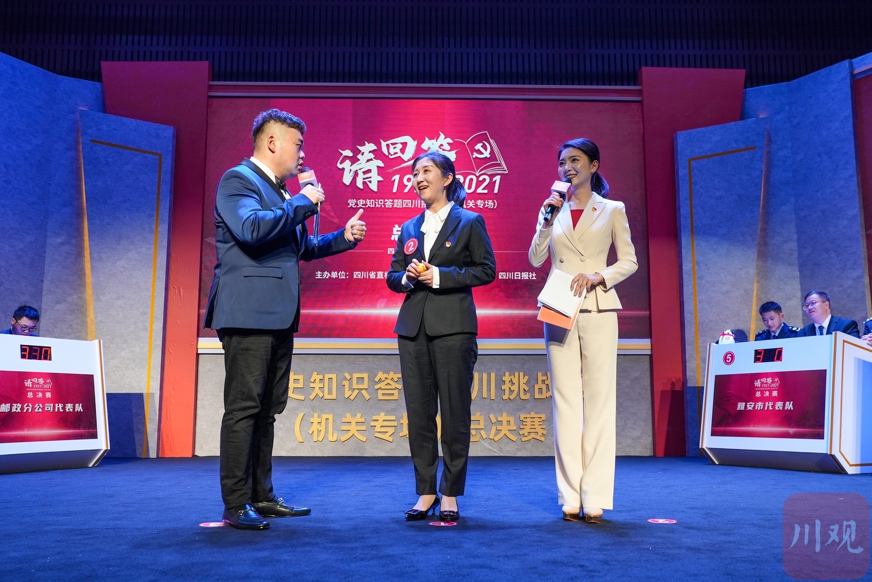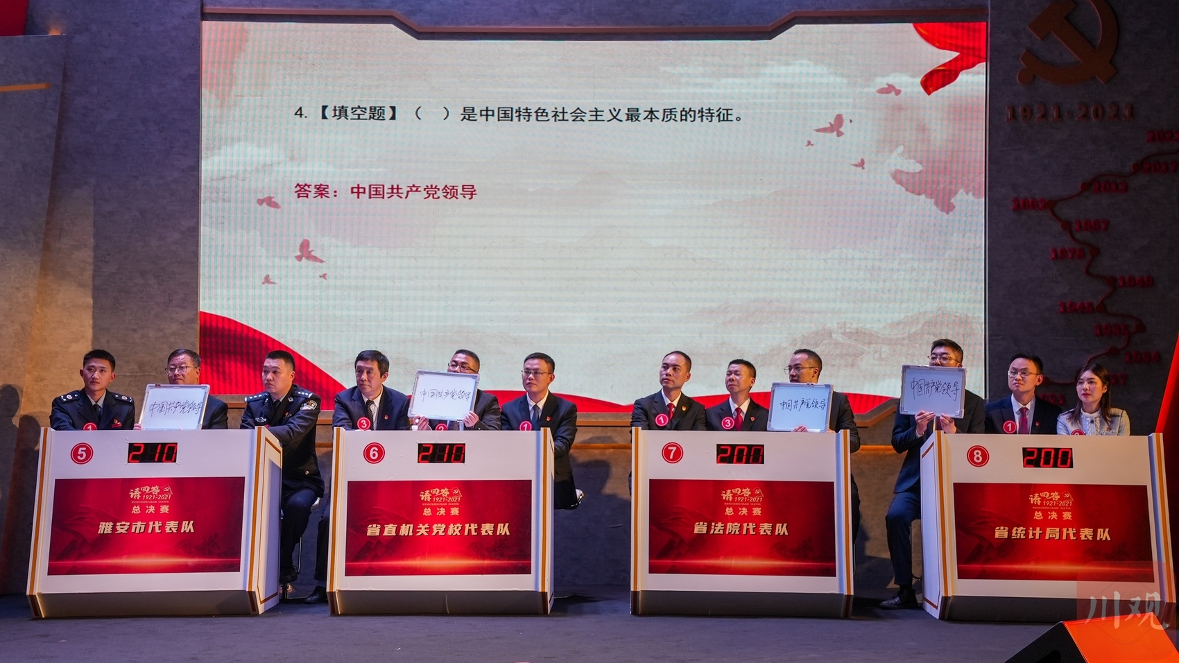 在全省上下深入学习贯彻落实党的十九届六中全会和省委十一届十次全会精神之际,为再次检验全省机关党员干部党史学习成效,由省直机关工委、省委党史研究室、四川日报社联合主办、蜀道集团协办的“请回答1921-2021”——党史知识答题四川挑战赛(机关专场)总决赛今晚在成都打响。经过紧张的现场角逐,雅安市代表队拔得头筹,获得比赛一等奖,广元市、遂宁市代表队获得二等奖,省信访局、省邮政分公司、省委省直机关党校、省法院、省统计局代表队获得三等奖。