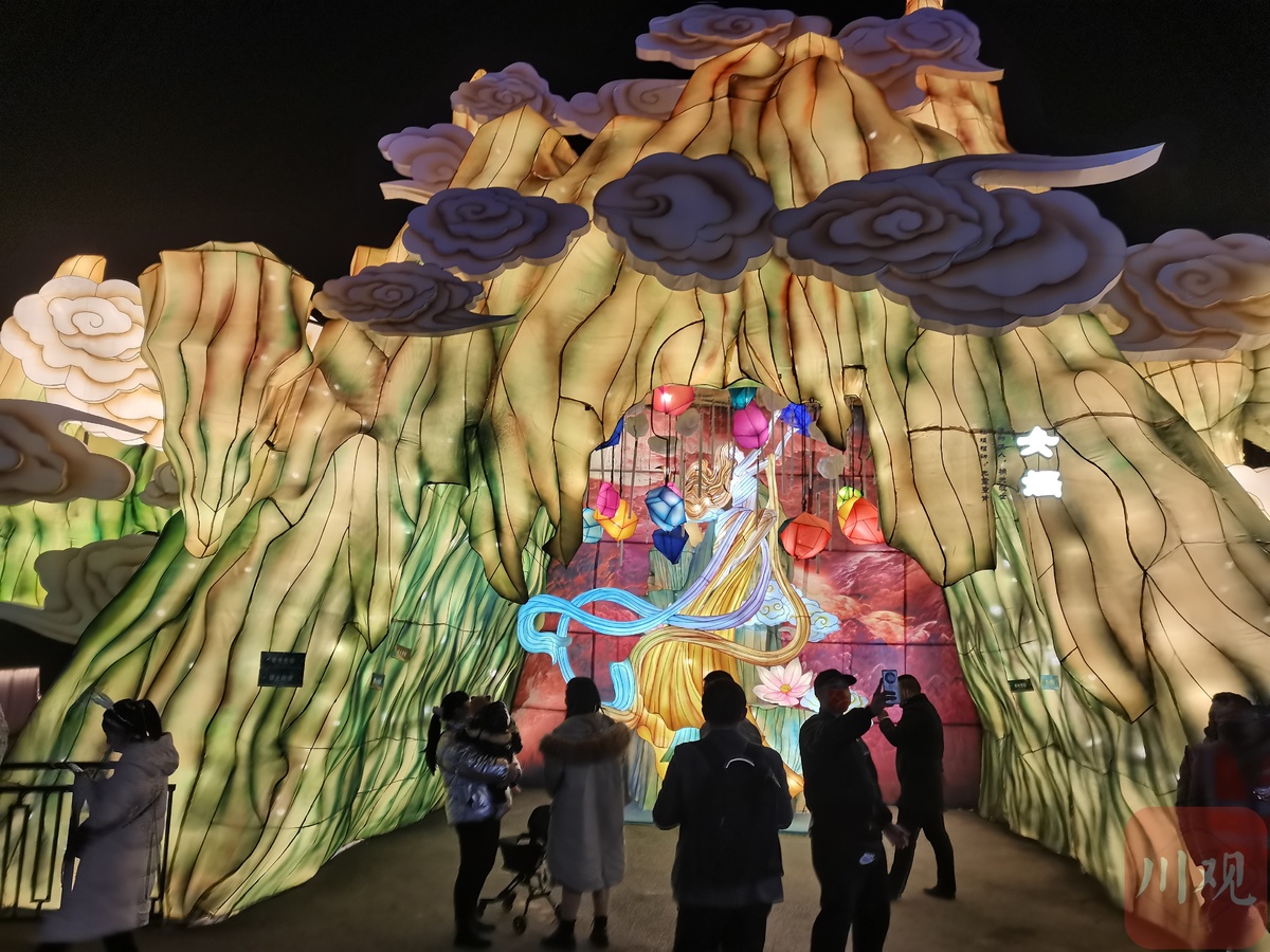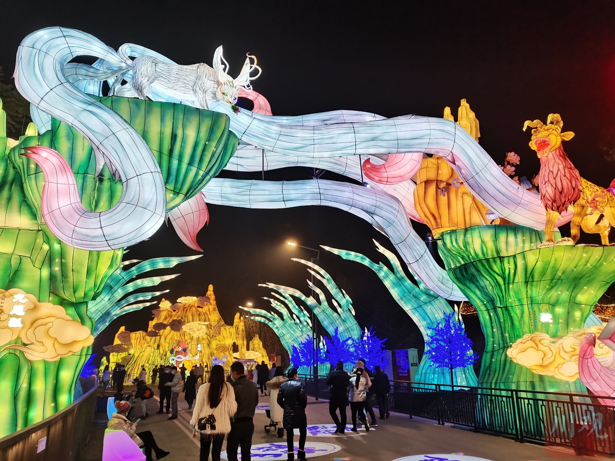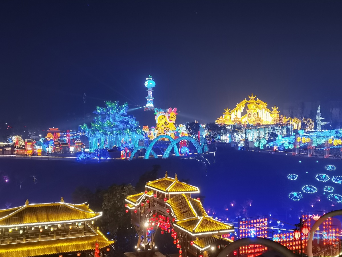 1月7日晚,自贡中华彩灯大世界景区流光溢彩,彩灯闪耀,游客们纷纷涌入园中赏灯。