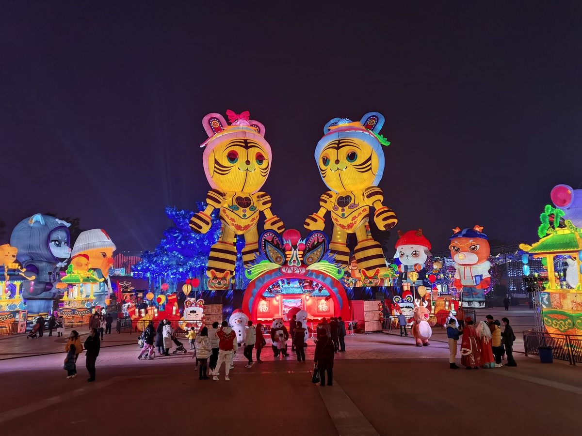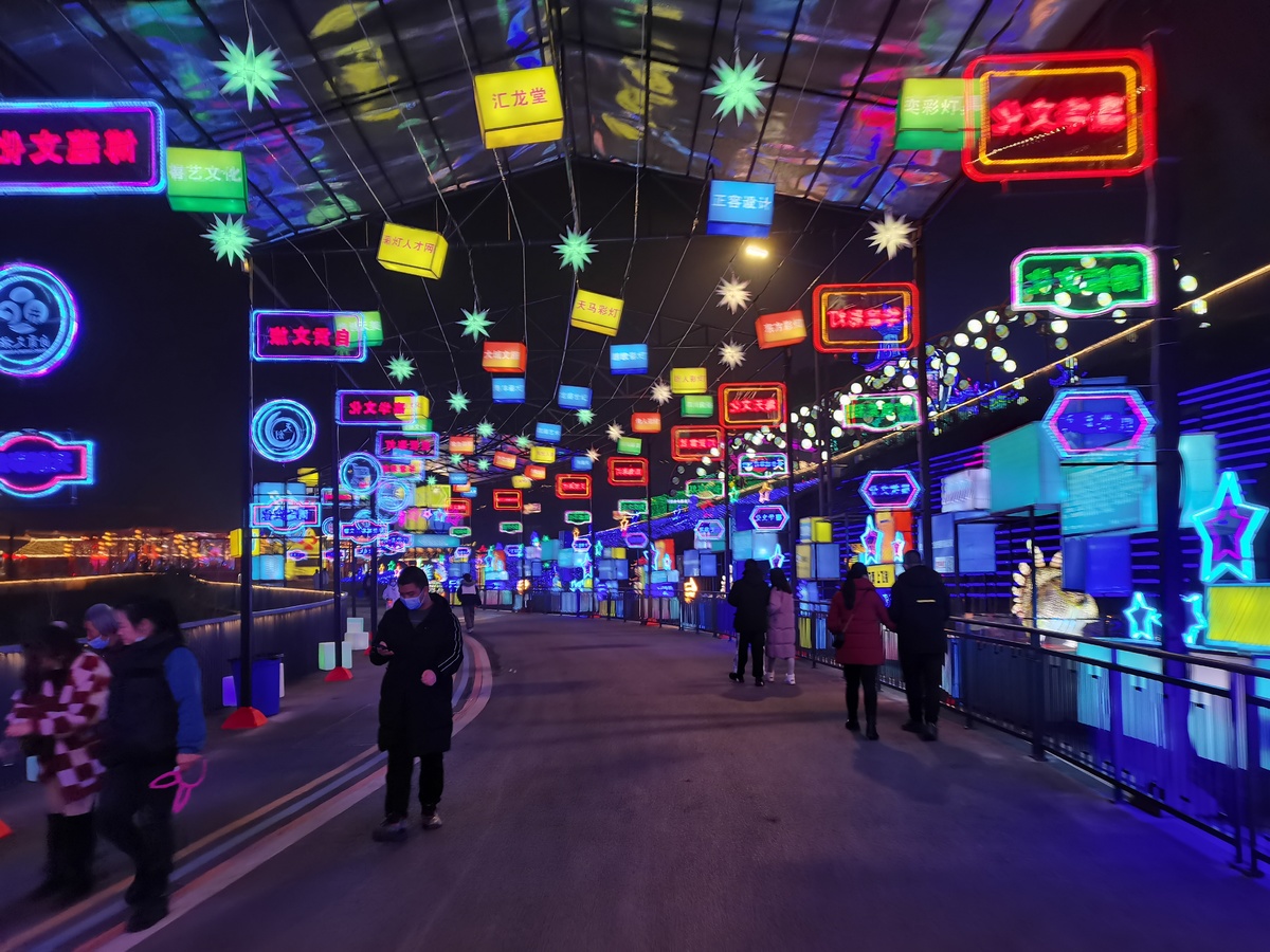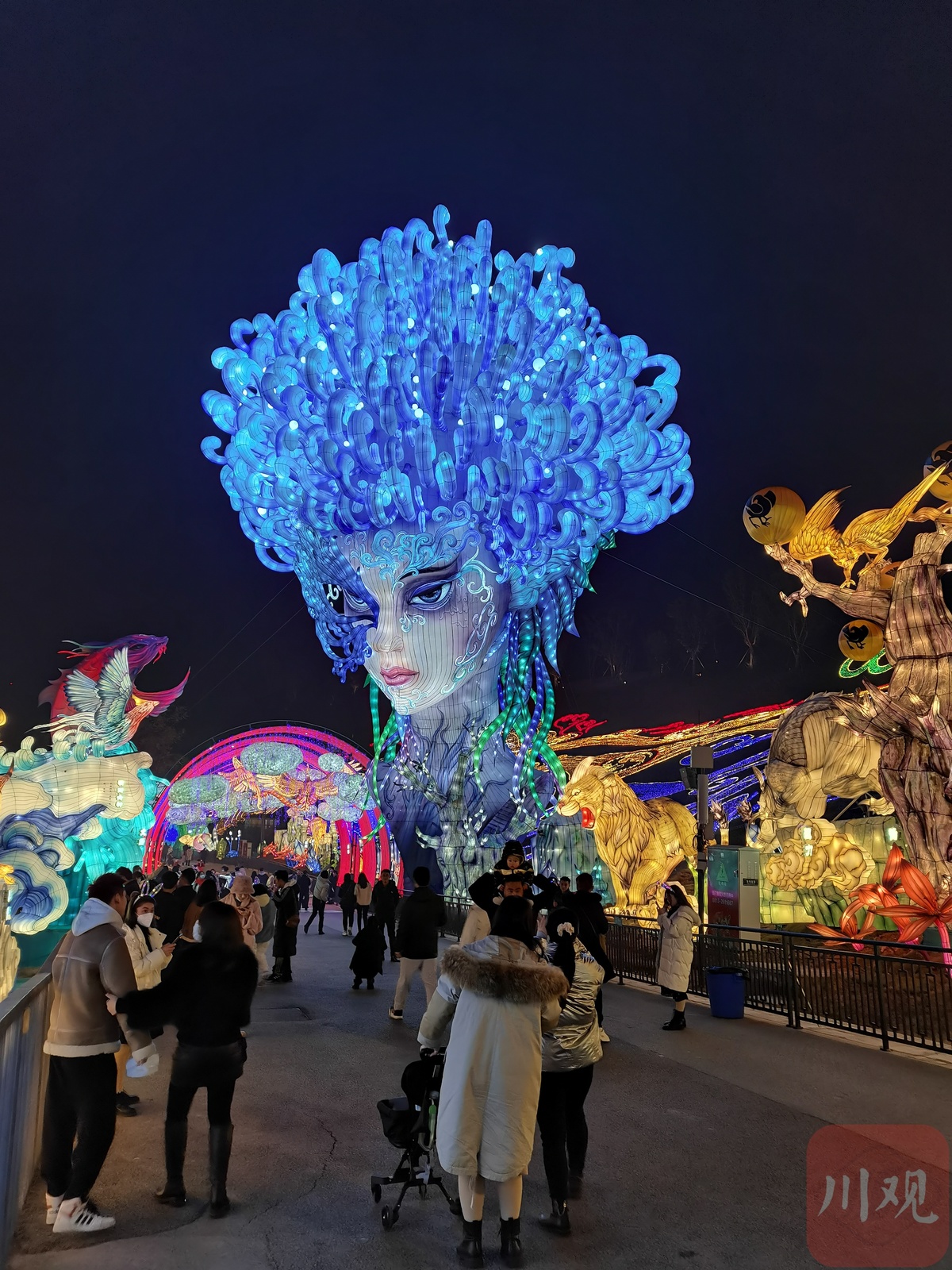 1月7日晚,自贡中华彩灯大世界景区流光溢彩,彩灯闪耀,游客们纷纷涌入园中赏灯。
