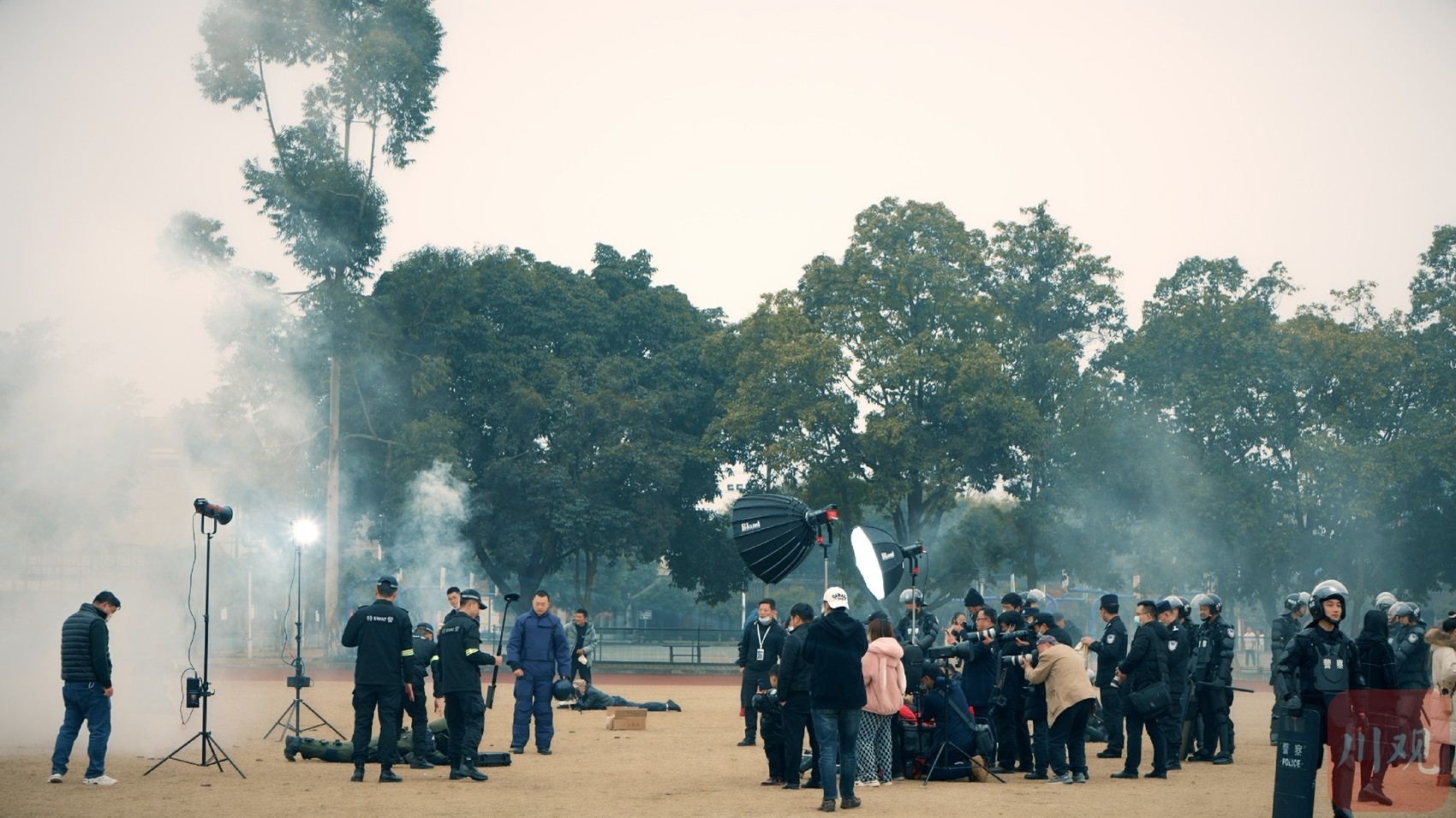 1月8日上午,成都市新都区体育中心运动场上迎来了一群特殊的观众。他们手持各种摄影设备,观摩拍摄特巡警演练,用镜头记录下精彩瞬间。