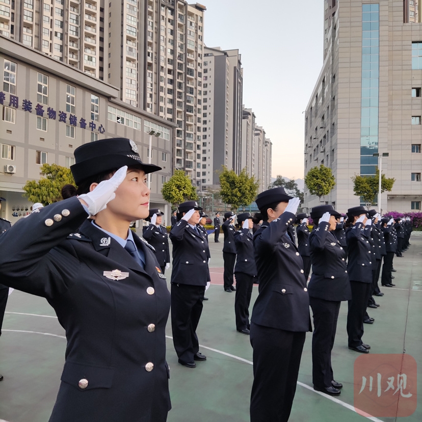 一声令下,警旗在风中绽放出最灿烂的色彩。260余名民、辅警精神抖擞、傲然屹立,在《人民警察警歌》中,面对警旗,庄严敬礼,怀满腔热情,诉无限忠诚。