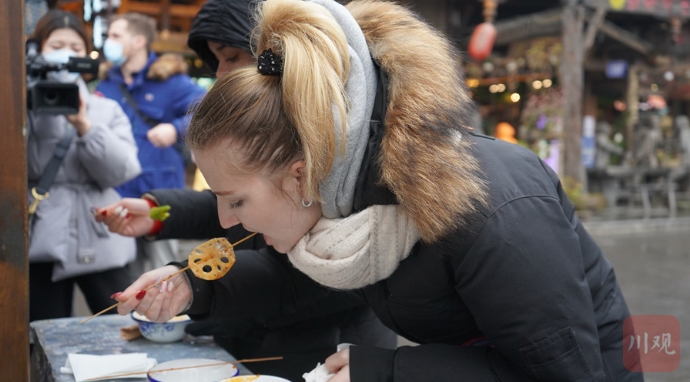 1月14日,人们来到宜宾,在一杯醇香的白酒中结束了此次行程。来自俄罗斯的埃利佐娃(Elizova)对有五粮液和李庄白肉的宜宾恋恋不舍,她在街边的商店里买了一本《李庄印象》,打算回去阅读后向她的俄罗斯朋友介绍这里。