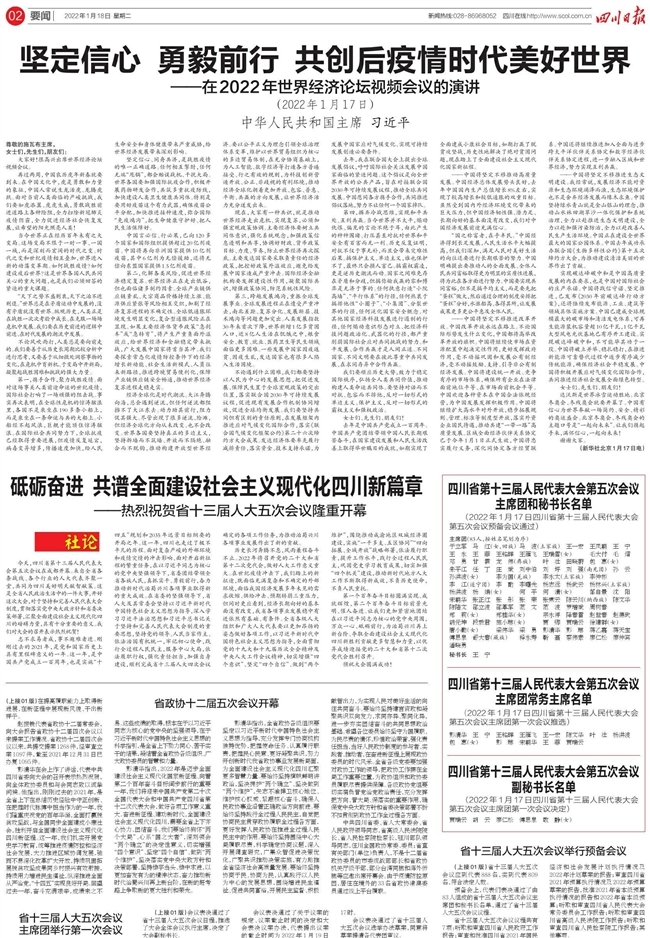 1月18日四川日报第五版“省两会特别报道版”版面截图。