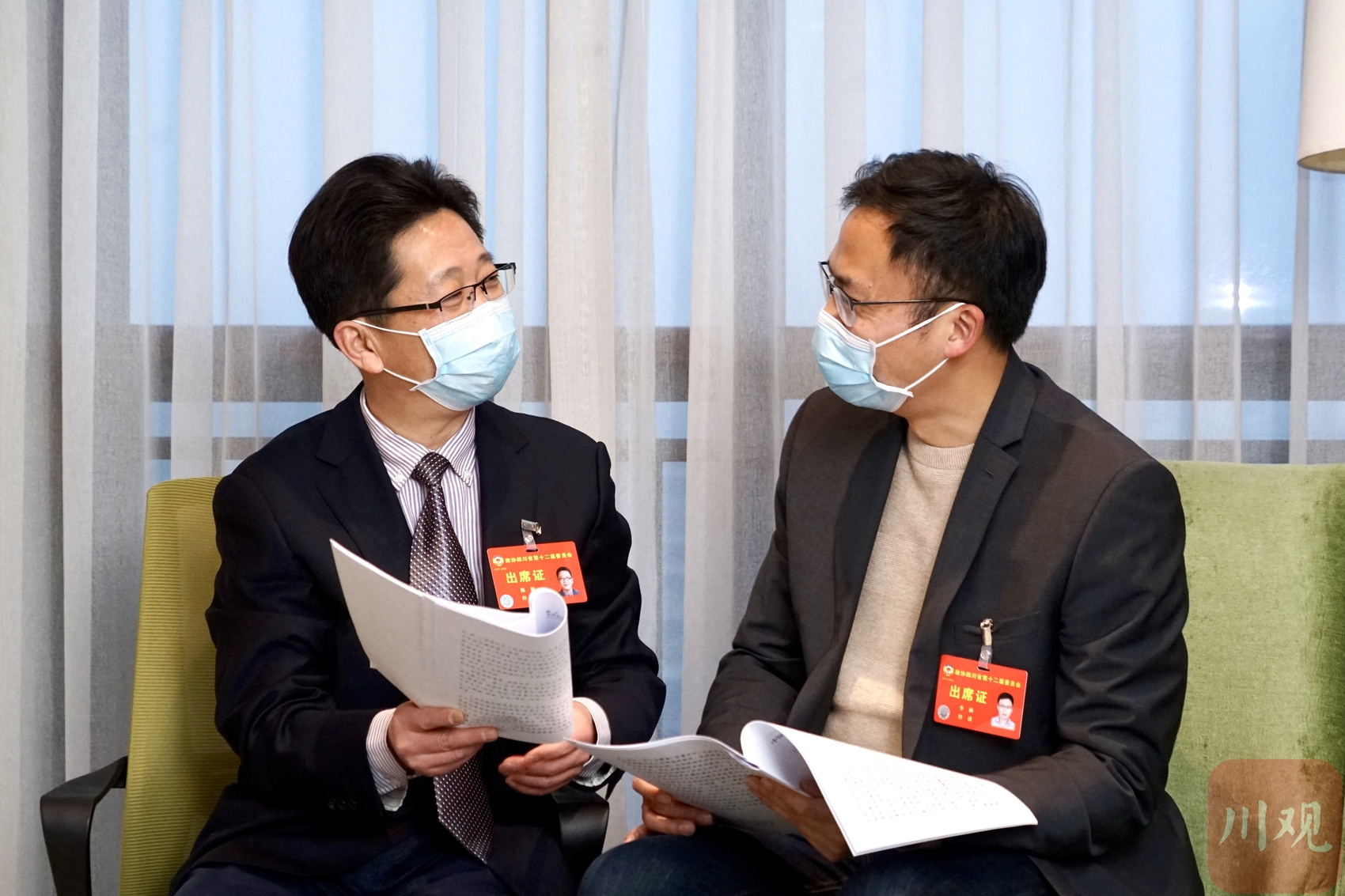 1月19日,陈彬委员(左)李涵委员探讨就“双碳”人才培养问题。