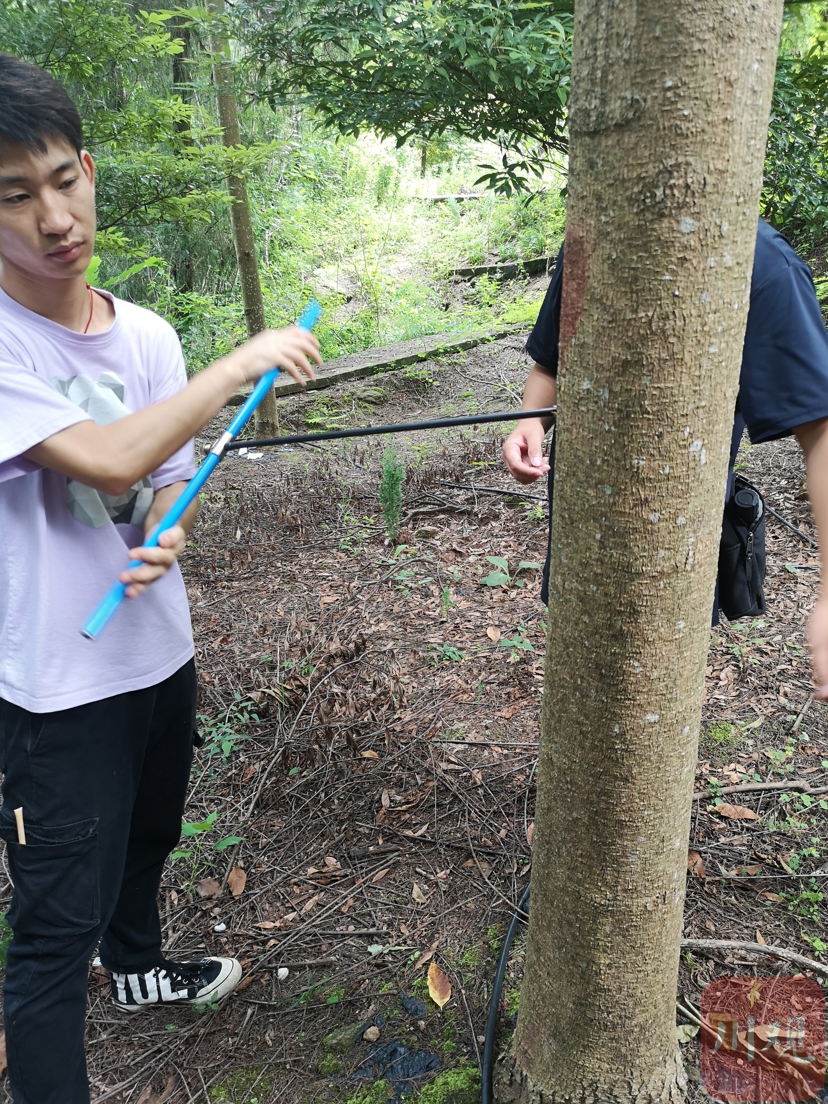 辜云杰团队科研人员正在对桢楠进行取样和测量