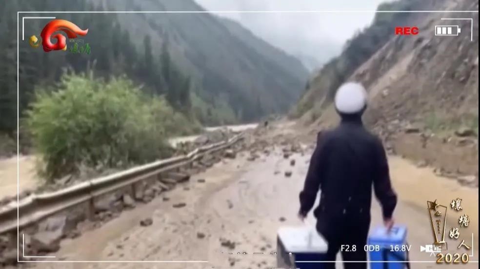 随后,尕西泽让和辅警周勇当即决定,出发接应血浆。“由于连续降雨,高位垮塌飞石断断续续,飞石大的如铁锅,小的也如苹果一般,想等飞石停止滚落再过去,却发现滚落势头丝毫不减。”想到病人正等待血浆救命,就必须和时间赛跑,来不及多等,尕西泽让决定穿越塌方路段取血浆,他一口气奔向垮塌路的一端,接过两个装着血浆的箱子,背一个抱一个,抬头观察,抓住飞石滚落间隙往回奔。