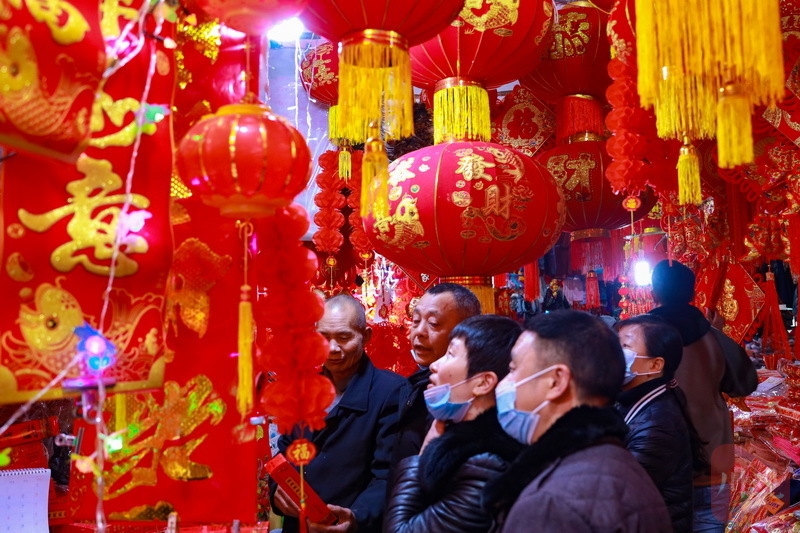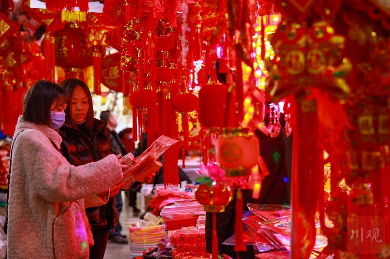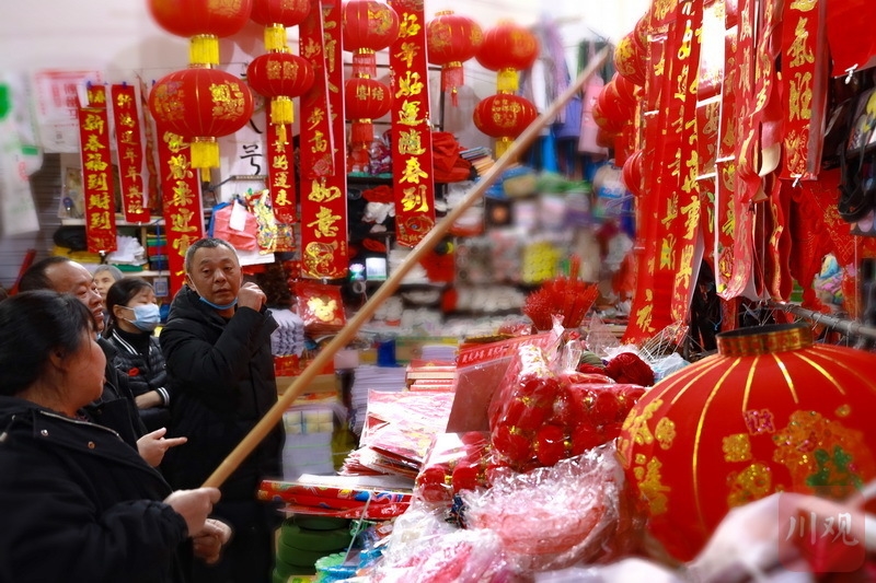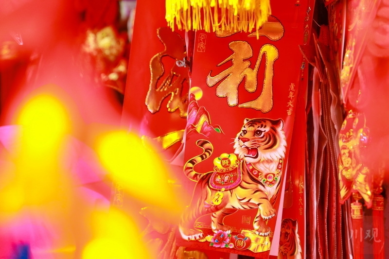 红红的灯笼、喜庆的春联、栩栩如生的年画……1月23日,位于雅安石棉县短途客运车站旁的杂货市场已被喜庆的大红色“攻陷”。随着虎年春节的临近,灯笼、春联、年画等年货铺满货架,市民纷纷采买年货,一派喜庆红火的景象,年味浓浓。