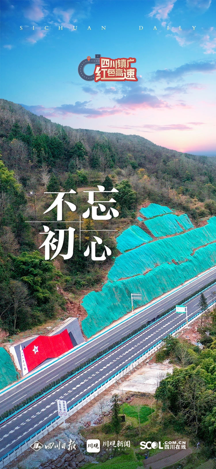 在通江至王坪的去程方向,以金色五角星作为标志性符号贯穿始终,寓意“一星一英烈”,全面展现红军反围剿、越秦岭、渡汉水、入川东等革命场景,营造缅怀先烈、接受教育的氛围;在王坪至通江的返程方向,以红色落叶为核心元素延绵向前,寓意“一叶一追思”,全面演绎祖国大好河山、经济社会发展、高速公路建设等发展成就,通过“红色”点燃理想信念之火,激发面向未来、接续奋斗的强大动力。