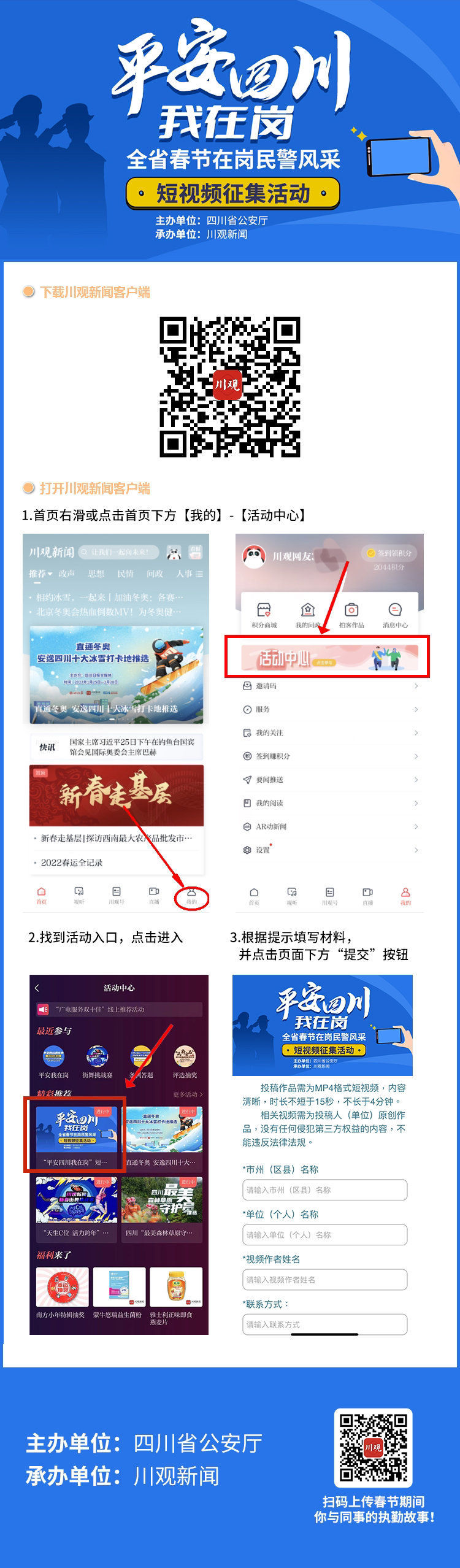 征集结束后,拟在2022年2月8日—2022年2月18日期间邀请全网用户参与视频点赞,全方位展示我省人民警察的风采。