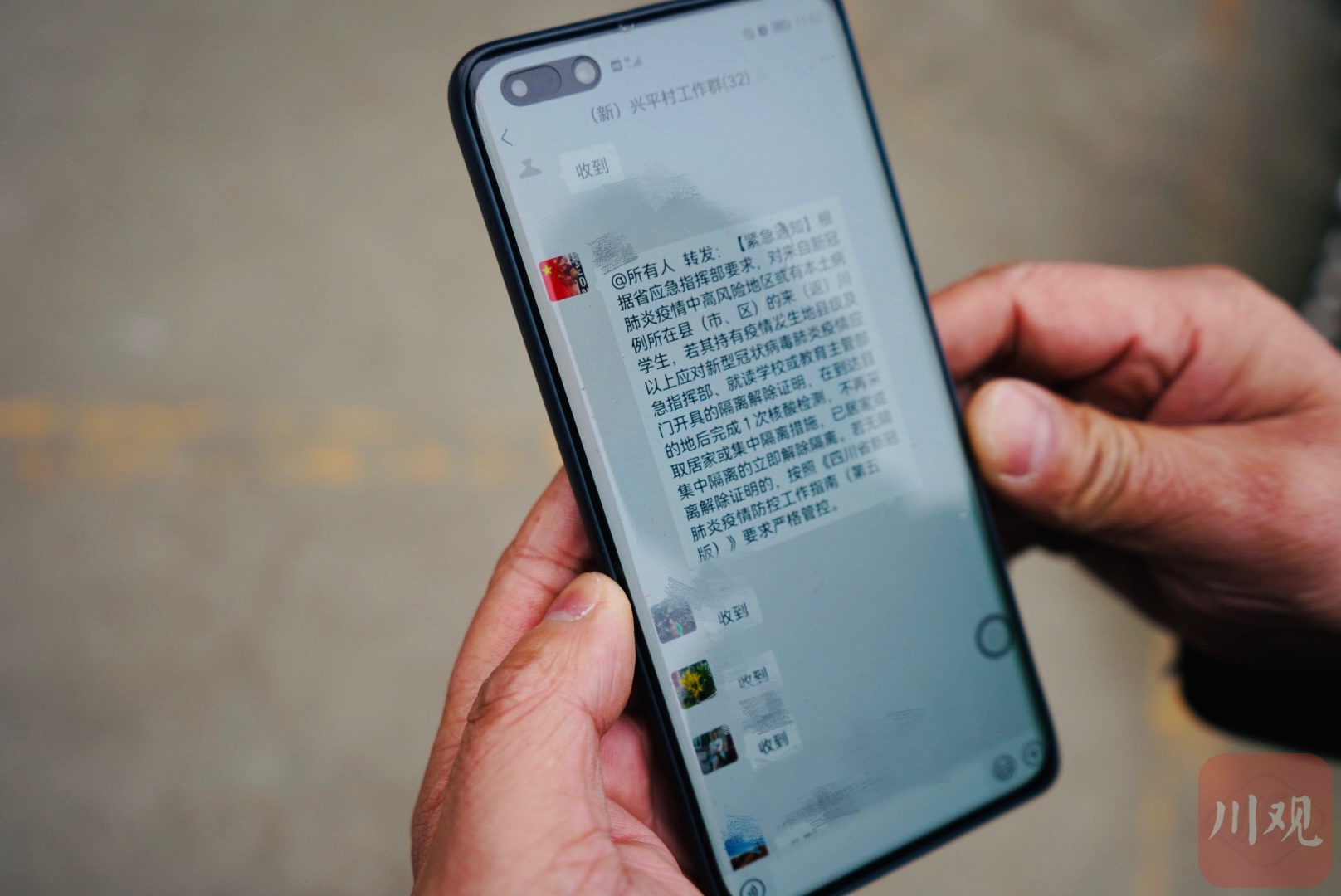 兴平村党委书记王勇有一个工作群,每天报疫情防控动态。魏冯 摄