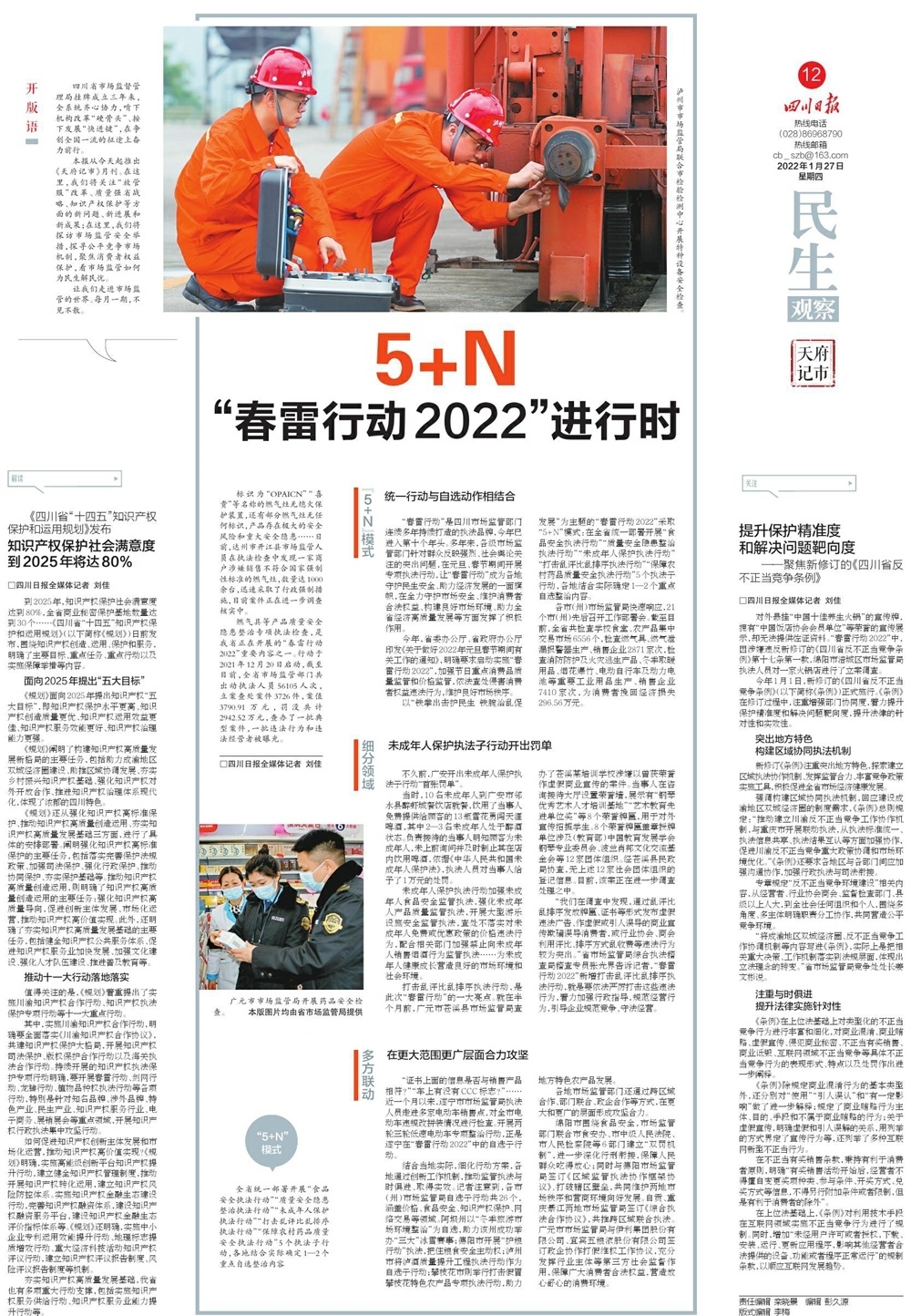 本月1日,新修订的《四川省反不正当竞争条例》正式施行。《条例》有哪些立法新理念?将为四川反不正当竞争环境建设等带来哪些影响?《四川省“十四五”知识产权保护和运用规划》日前发布,围绕知识产权创造、运用、保护和服务,四川有哪些主要目标、重点任务、重点行动?这些都是我们本期关注的焦点。