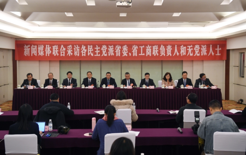 1月19日,参加省政协十二届五次会议的各民主党派省委、省工商联负责人和无党派人士代表接受新闻媒体的联合采访 肖雨杨摄