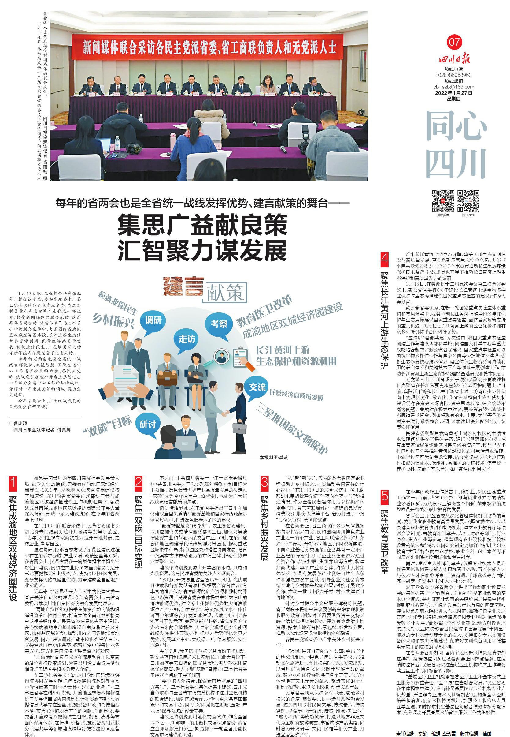 如果要问最近两年四川经济社会发展最火热、最受关注的话题,无疑有成渝地区双城经济圈建设。2021年,成渝地区双城经济圈建设按下加速键。在川渝省市党委统战部协同参与成渝地区双城经济圈建设工作机制框架下,各统战成员围绕成渝地区双城经济圈建设开展大量深入调研,形成一系列建议提案,在今年的省两会上呈现。