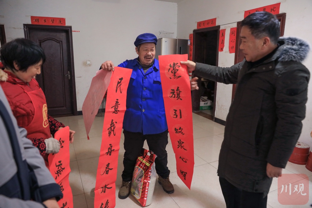 1月26日,临近春节,雅安市荥经县龙苍沟镇万年村灯笼高挂,年味正浓。节前,雅安市委宣传部带着慰问品和新春对联,走访慰问万年村部分困难群众和老党员。