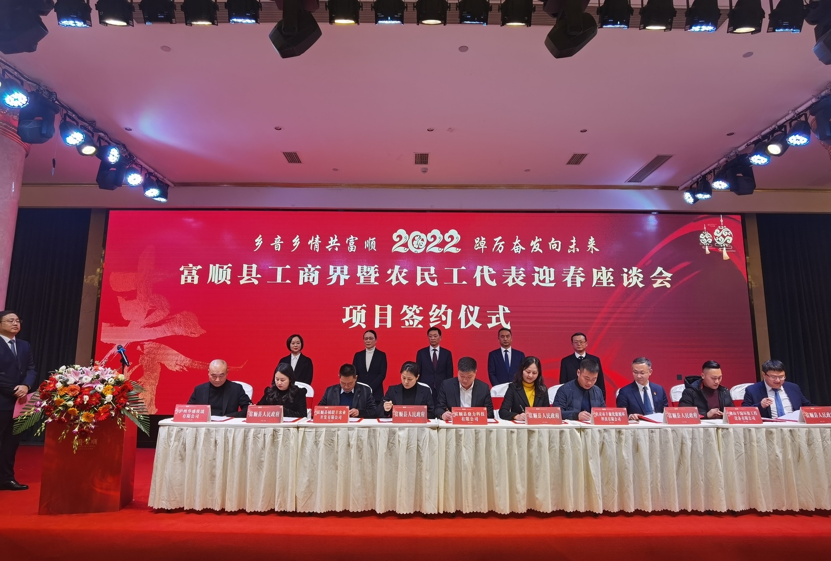 1月27日,记者从富顺县政府获悉,近日在富顺县2022年工商界暨农民工代表迎春座谈会上,该县签下新年第一单,现场签约5个项目,总投资20.3亿元,涉及建筑新材料、废旧电池绿色循环利用、酿酒、制陶等多个领域。