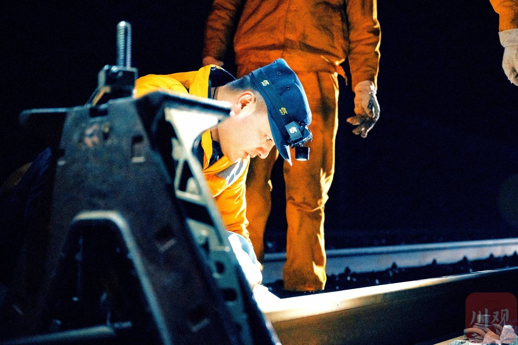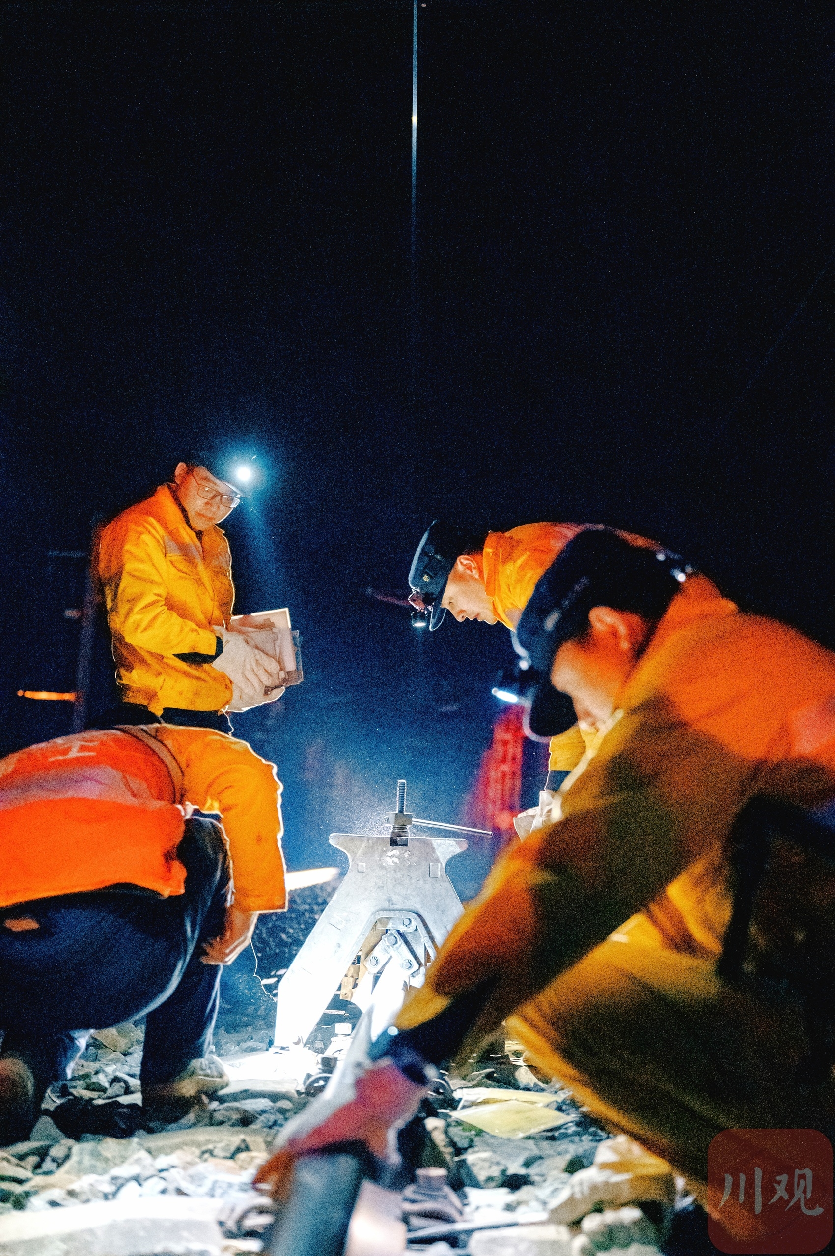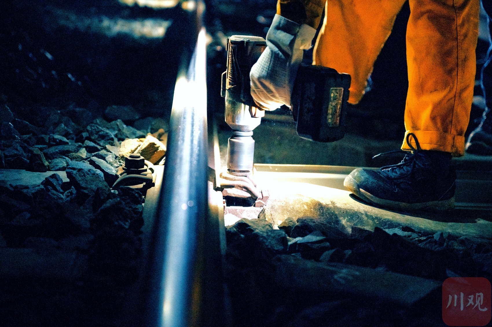 为保障春节期间旅客平安出行,使铁路线路达到列车运行最佳状态,1月27日凌晨,中国铁路成都局集团有限公司绵阳工务段太公线路维修工区职工利用“天窗点”,对兰渝铁路广元至苍溪区间铁路线路进行维修保养,确保客货列车平稳驶过。