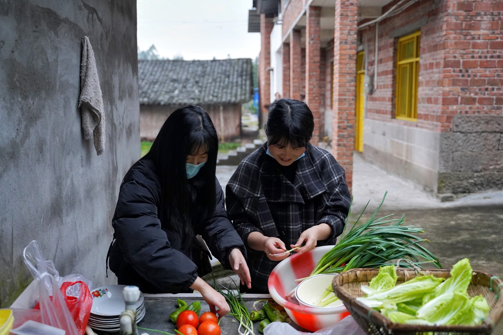 摘菜、生火、洗锅、煮饭、炒菜……两个“唐书记”在厨房中忙活,烟囱冒着缕缕炊烟,还伴着阵阵菜香。