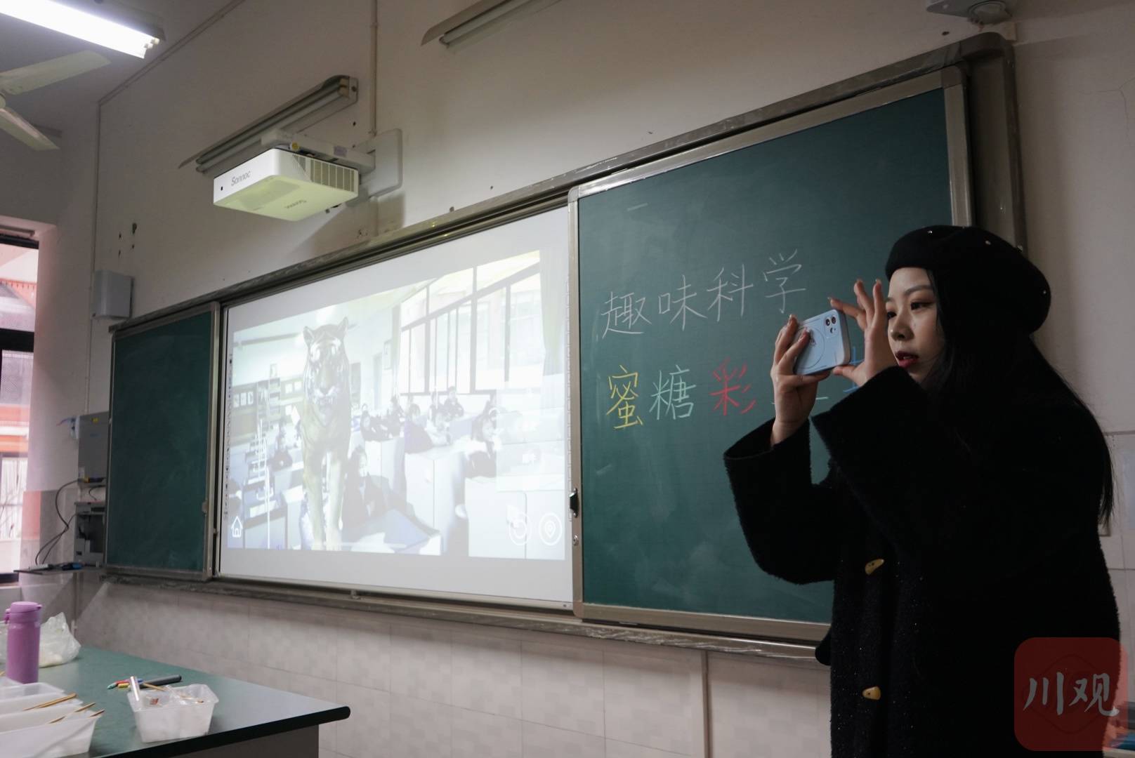 科学课上,科学老师马桑老师正在带老虎“进”班级 魏冯/摄