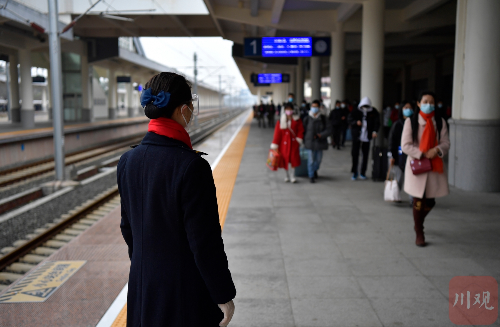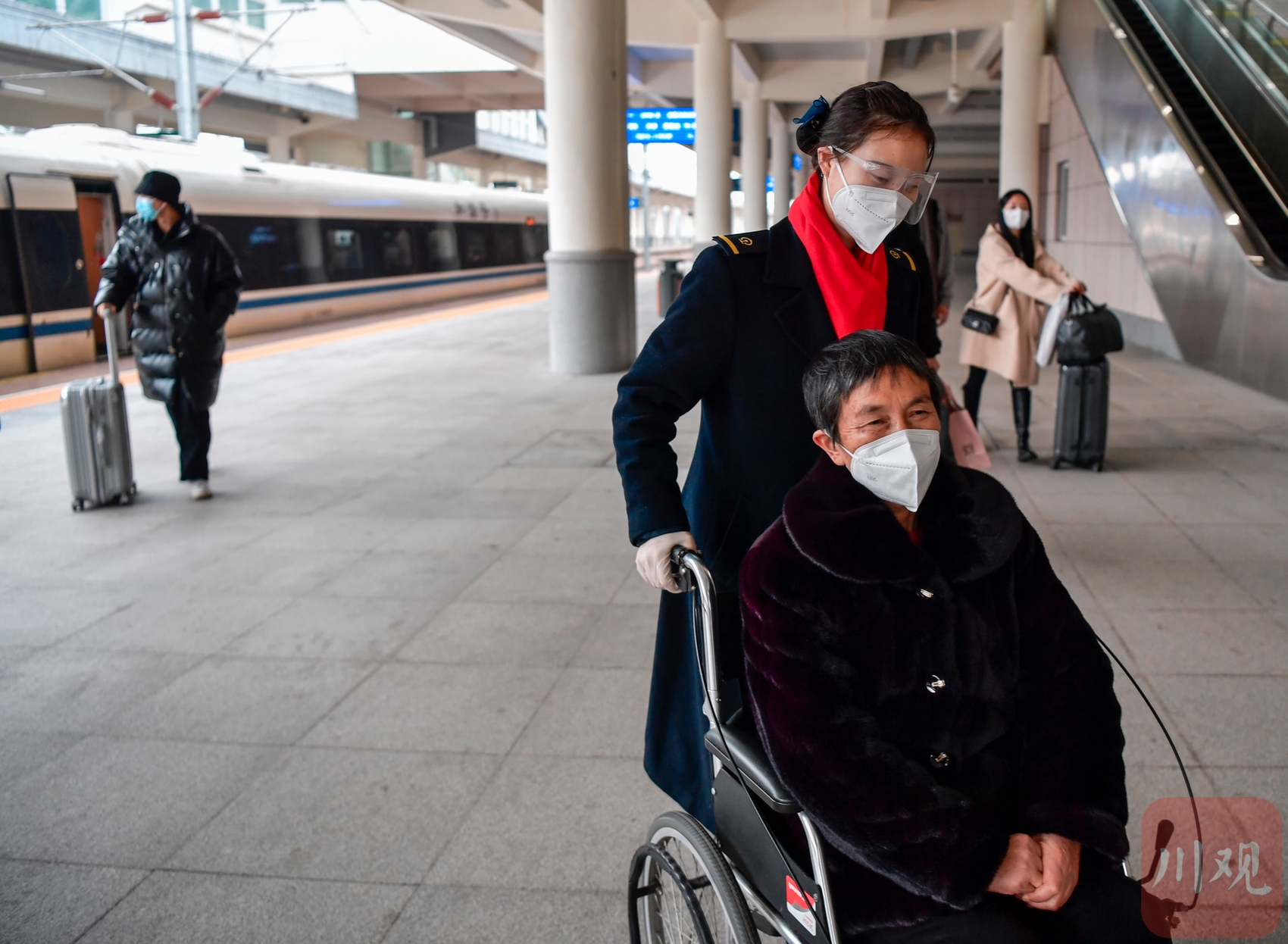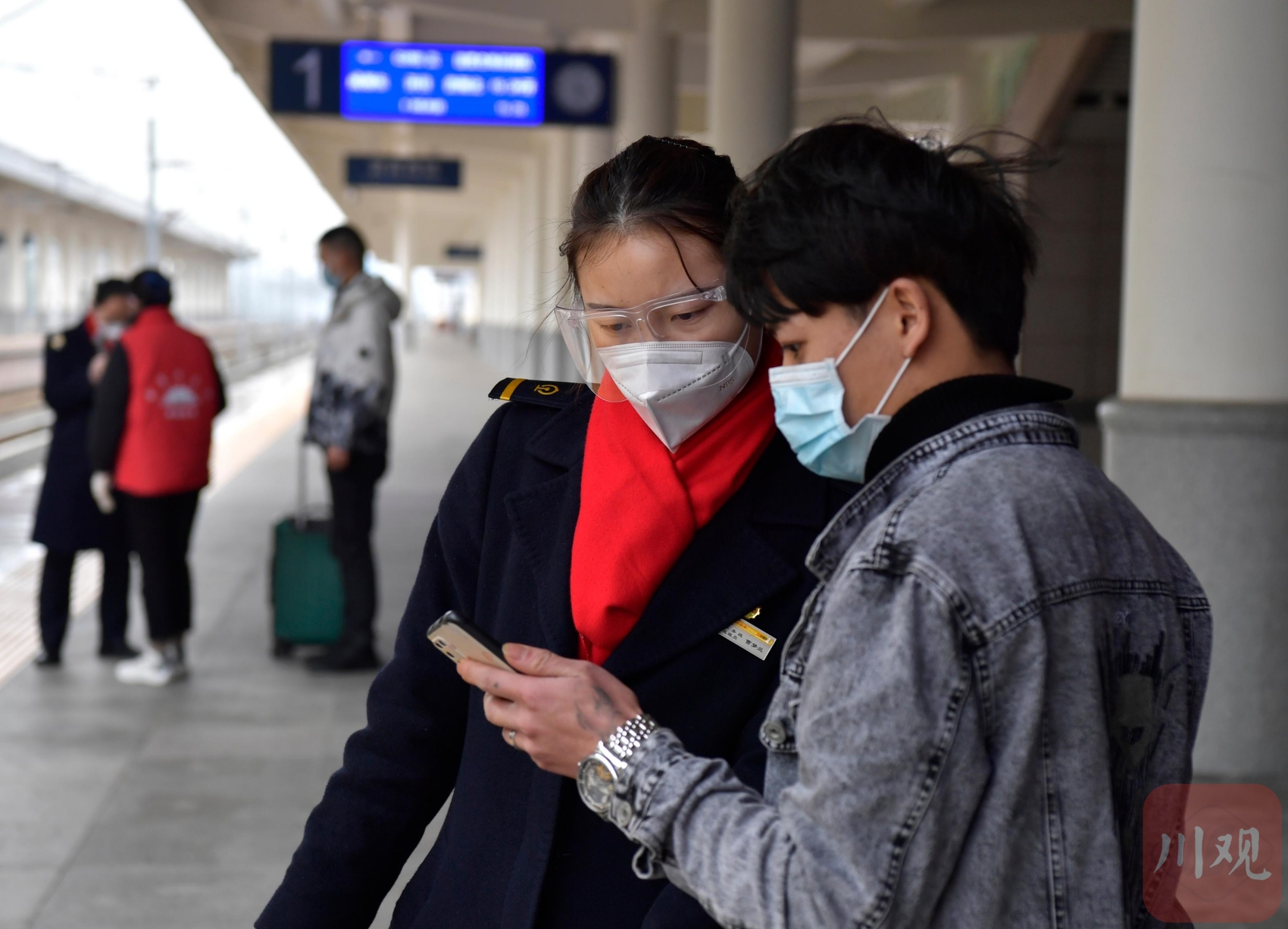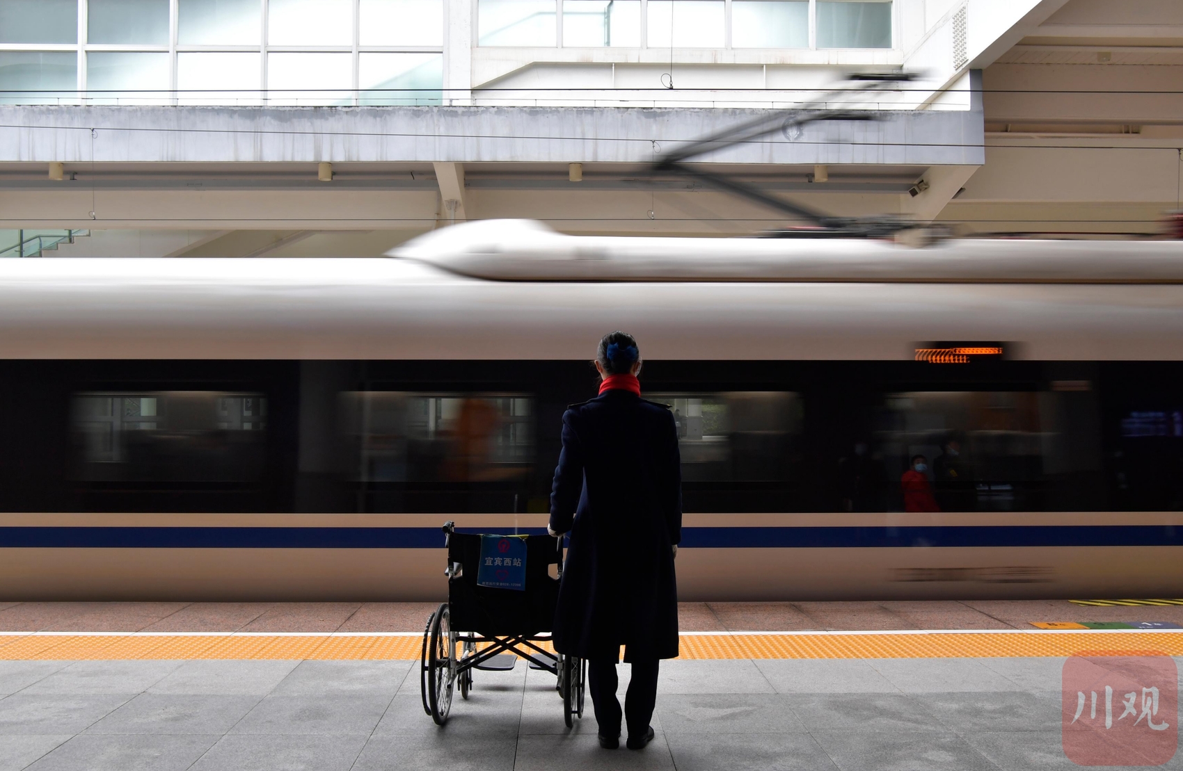 “您好,请问这趟高铁在哪里乘车呢?”1月27日,宜宾西站一楼大厅服务台,一位旅客提着行李正在问询。客运值班主任曹梦兰立即查看旅客的行程信息提示单,迅速指明方向:“您好,您的车在二楼候车室候车,沿着扶梯直接上二楼,到时候会有广播提示上车。”