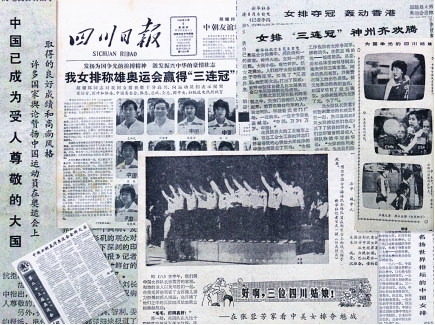 1984年8月9日,《四川日报》关于第23届洛杉矶夏季奥运会中国女排夺冠及四川三杰的报道(四川省档案馆藏)。