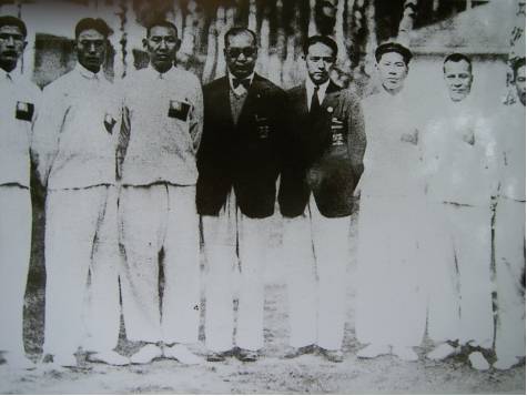1936年,参加柏林第11届夏季奥运会国(武)术表演队员合影(右三为郑怀贤)。