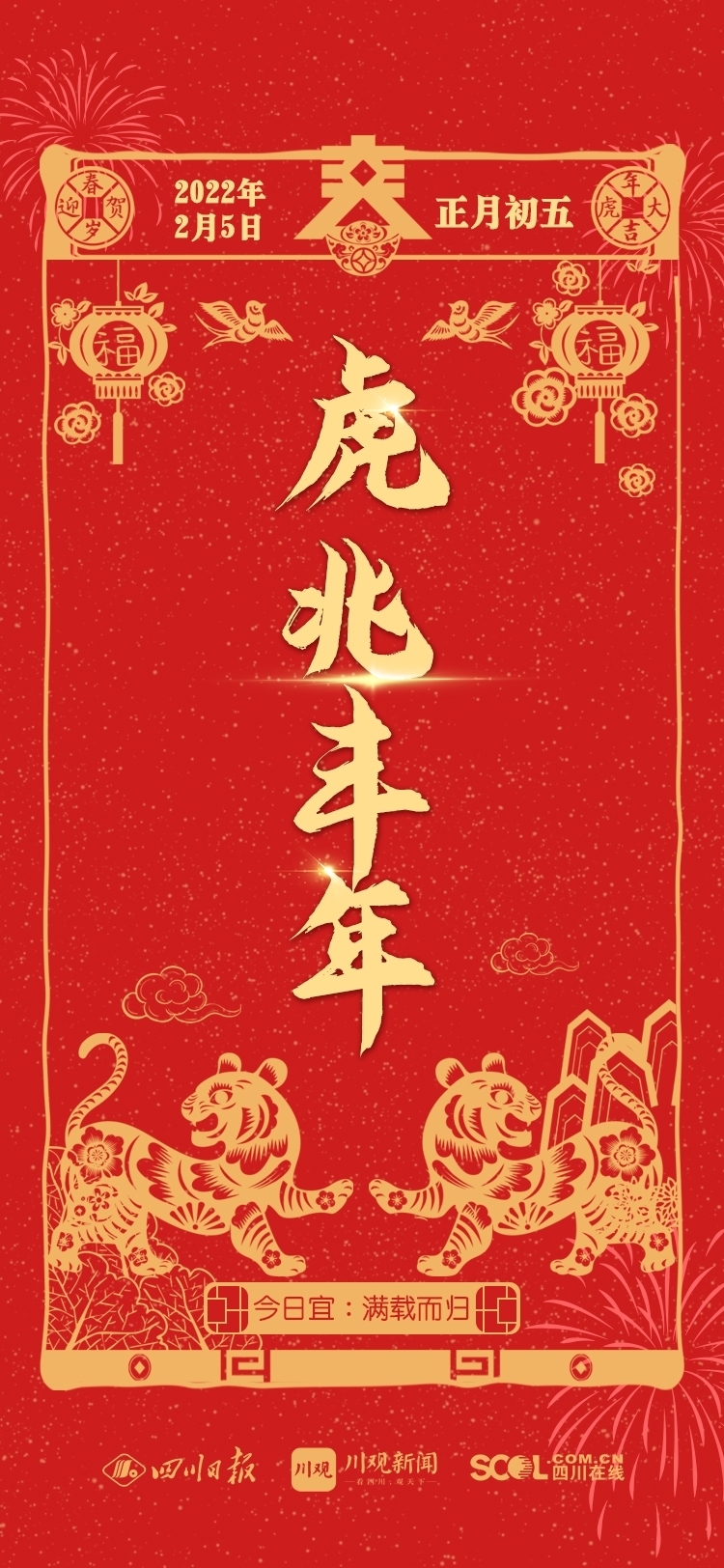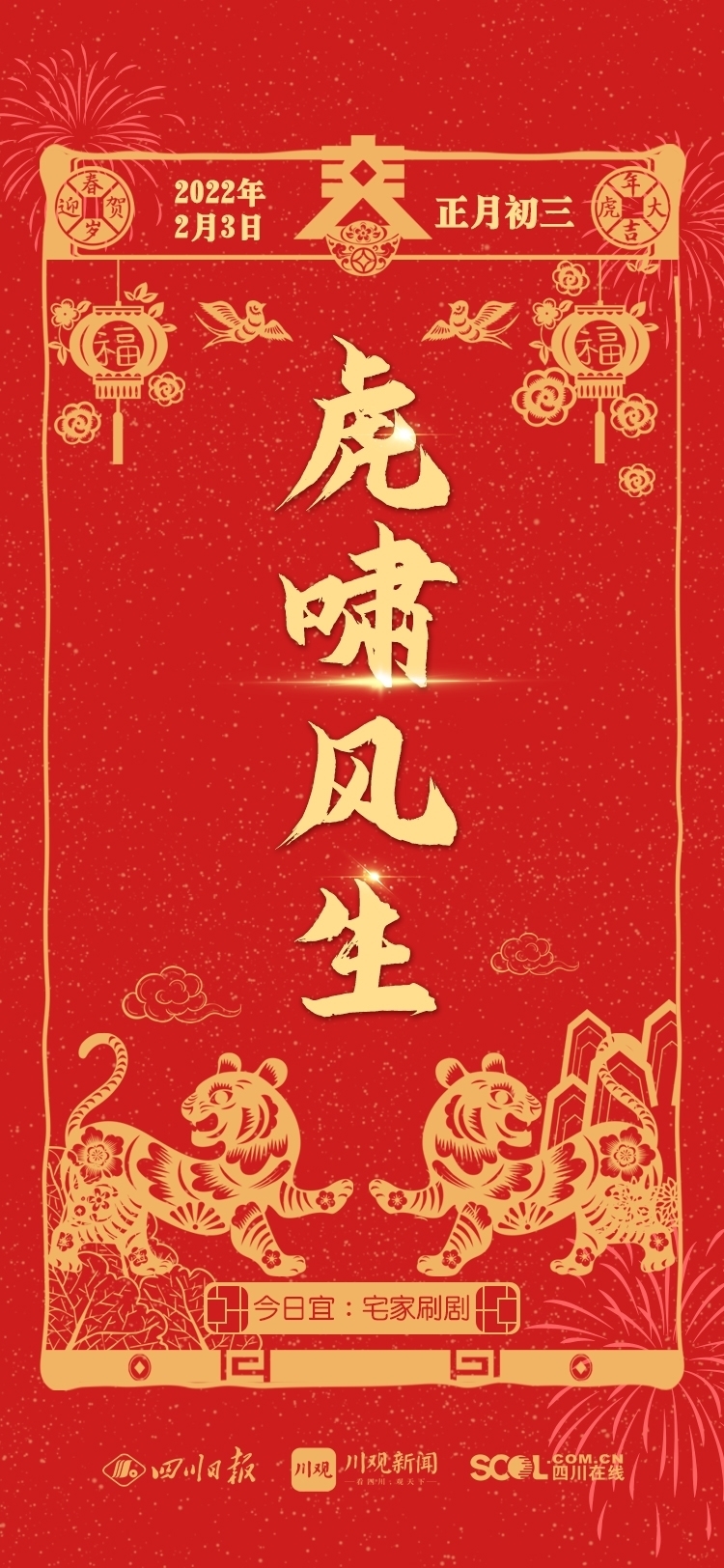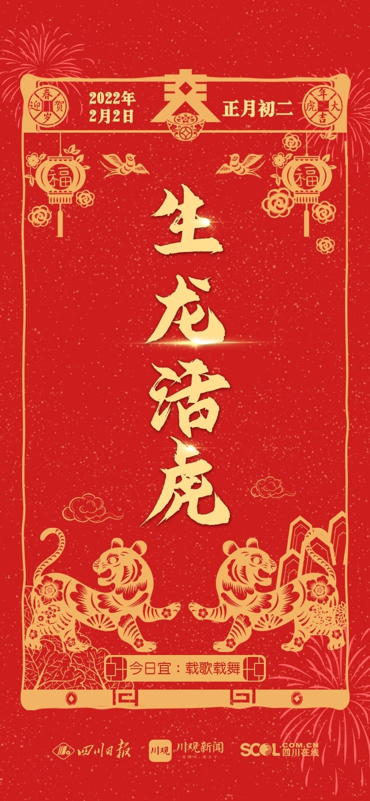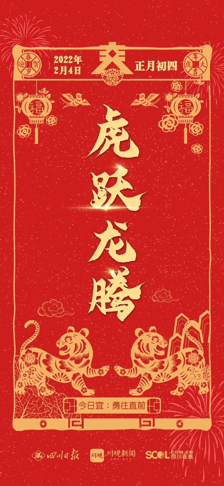 明天就是除夕啦!很快,我们就将迎来壬寅虎年,四川在线送给你一组“红红虎虎”的新春海报,春节七天,每天都有新鲜美好的祝福!祝你虎虎生威、生龙活虎、如虎添翼!