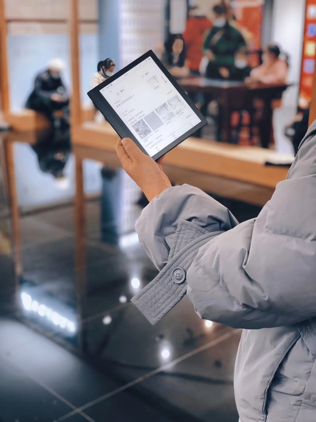 当然,最“豪横”的当属立在墙边的阅读本自助借阅柜。李莉介绍,这是一个神奇的智能书柜,就像哆啦A梦的神奇口袋一样,它能满足读者一次借阅5万册电子书!在这里,读者可借出一个类似Kindle的电子阅读器设备——阅读本,里面设置了阅读本在线书城选书系统,免费提供文学、历史、哲学、艺术、经管、社科、军事等热门图书5万余册。阅读本借阅后,读者通过系统浏览、搜索自己感兴趣的图书,下载到书架离线观看,打造属于个人的移动图书馆。